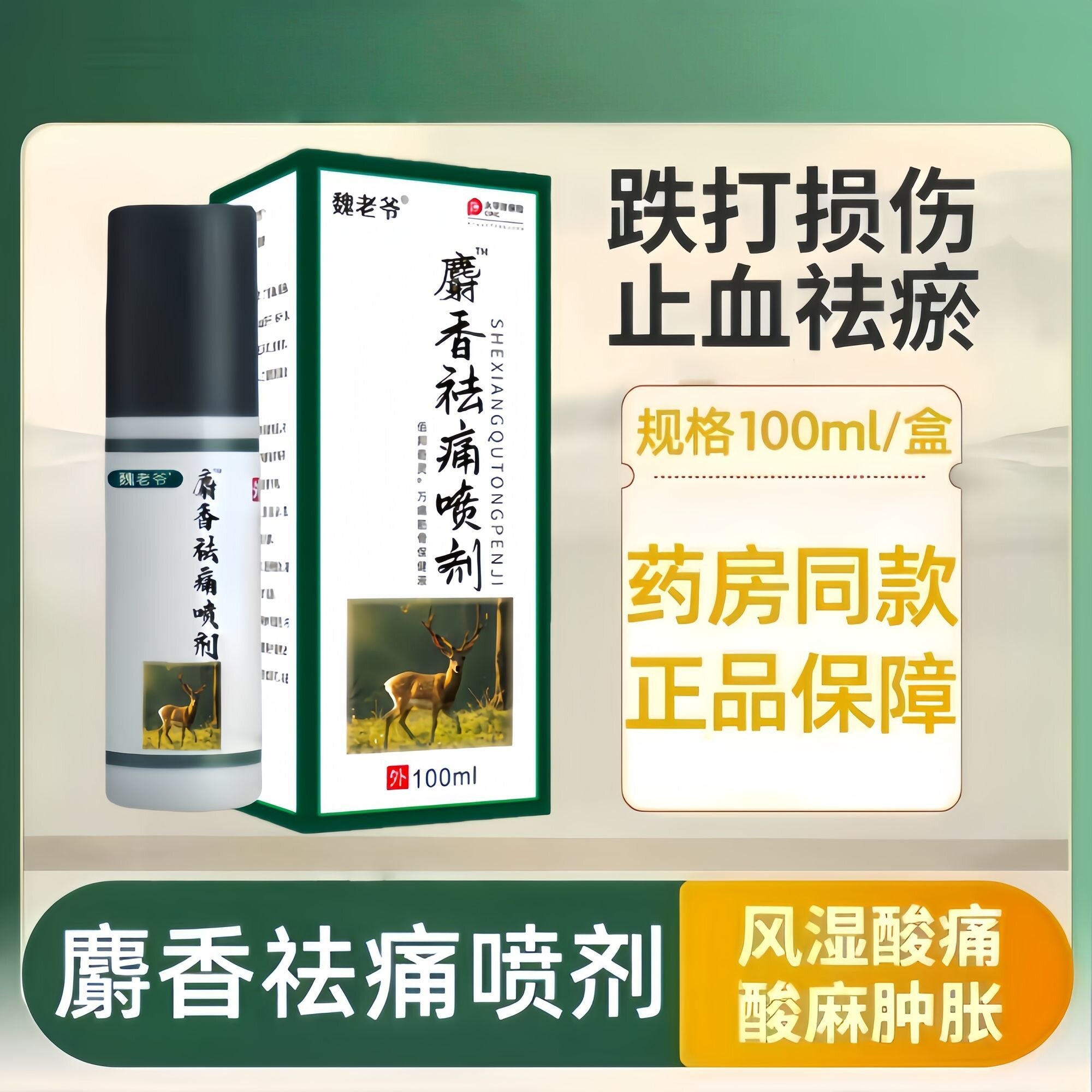 📚 麝香祛痛喷剂100ml跌打损伤肌肉酸痛缓解疼痛活血祛瘀舒缓外用
