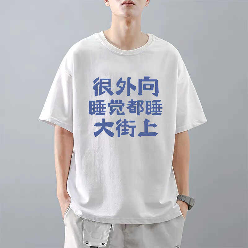 📚 先活着吧其他我再想办法短袖潮纯棉趣味搞怪文字社恐很内向t恤男