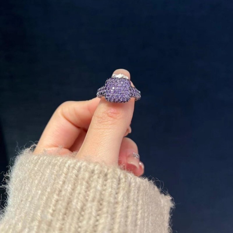 📚 【明星同款】前卫紫色方形戒指女轻奢时尚高级感红红紫紫指环送礼