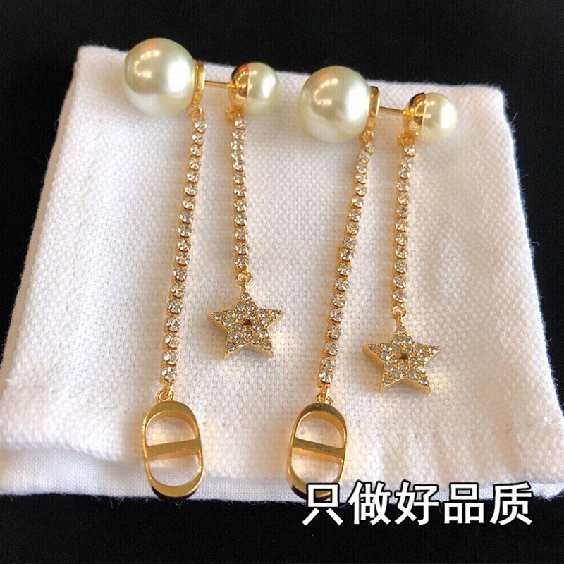 📚 2025年新款CD字母前后珍珠镶钻星星流苏钻耳环女轻奢高级感耳饰