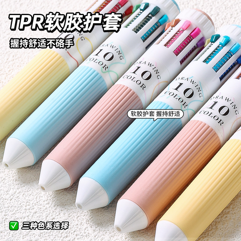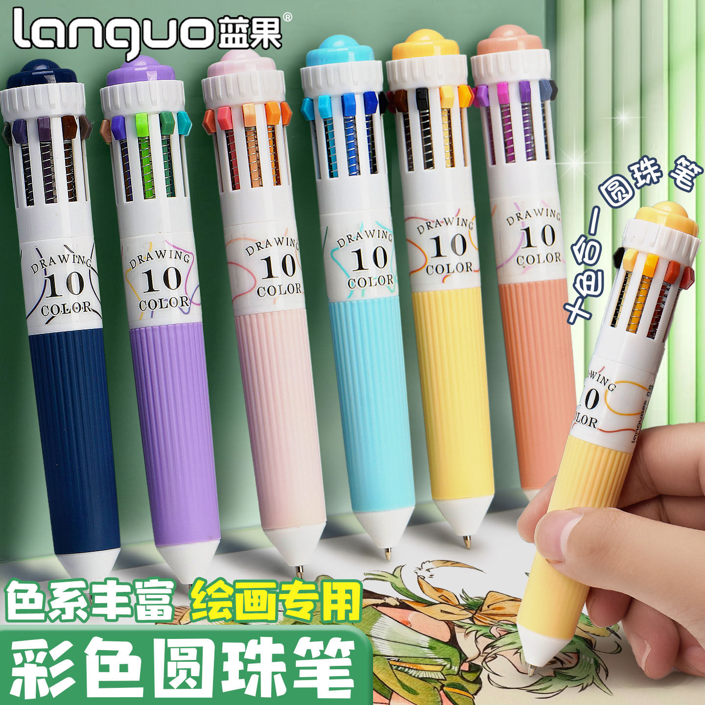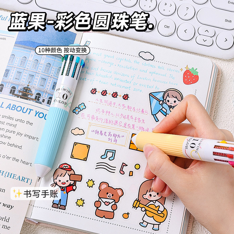 📚 蓝果彩色绘画圆珠笔小学生十色合一书写顺滑手感好手账笔多功能儿童按动笔高颜值初中生做笔记多色合一标记笔