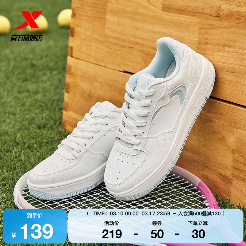 📚 特步板鞋女鞋苜白春季新款潮流休闲鞋男鞋厚底增高运动鞋小白鞋子