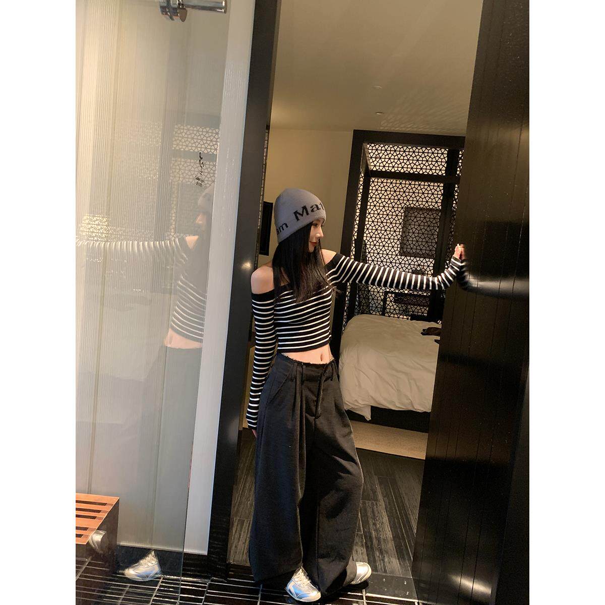 📚 张只只原张公子STUDIO辣妹一字肩条纹针织衫上衣女春季露肩打底衫