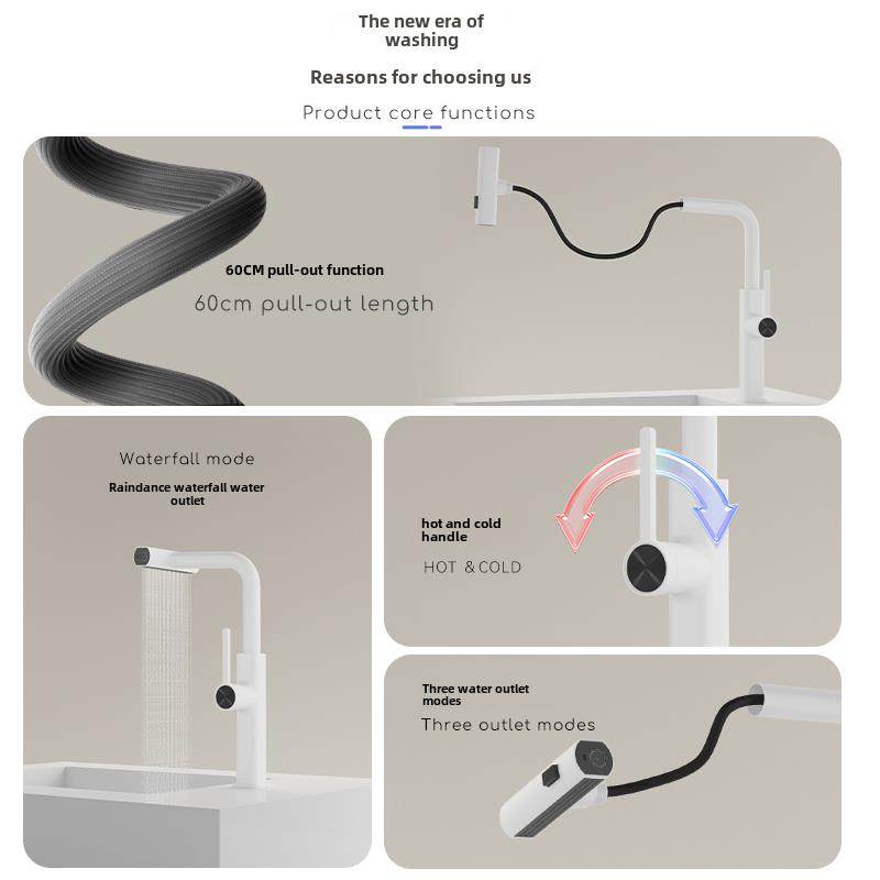 📚 (海因丹斯系列)厨房瀑布水龙头洗脸盆水槽水龙头拉出冷热旋转智