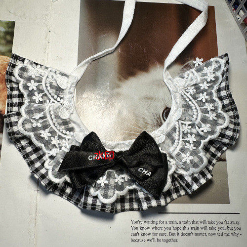 📚 黑格子蝴蝶结宠物蕾丝花边口水巾格子狗狗饰品猫咪围嘴法牛围巾