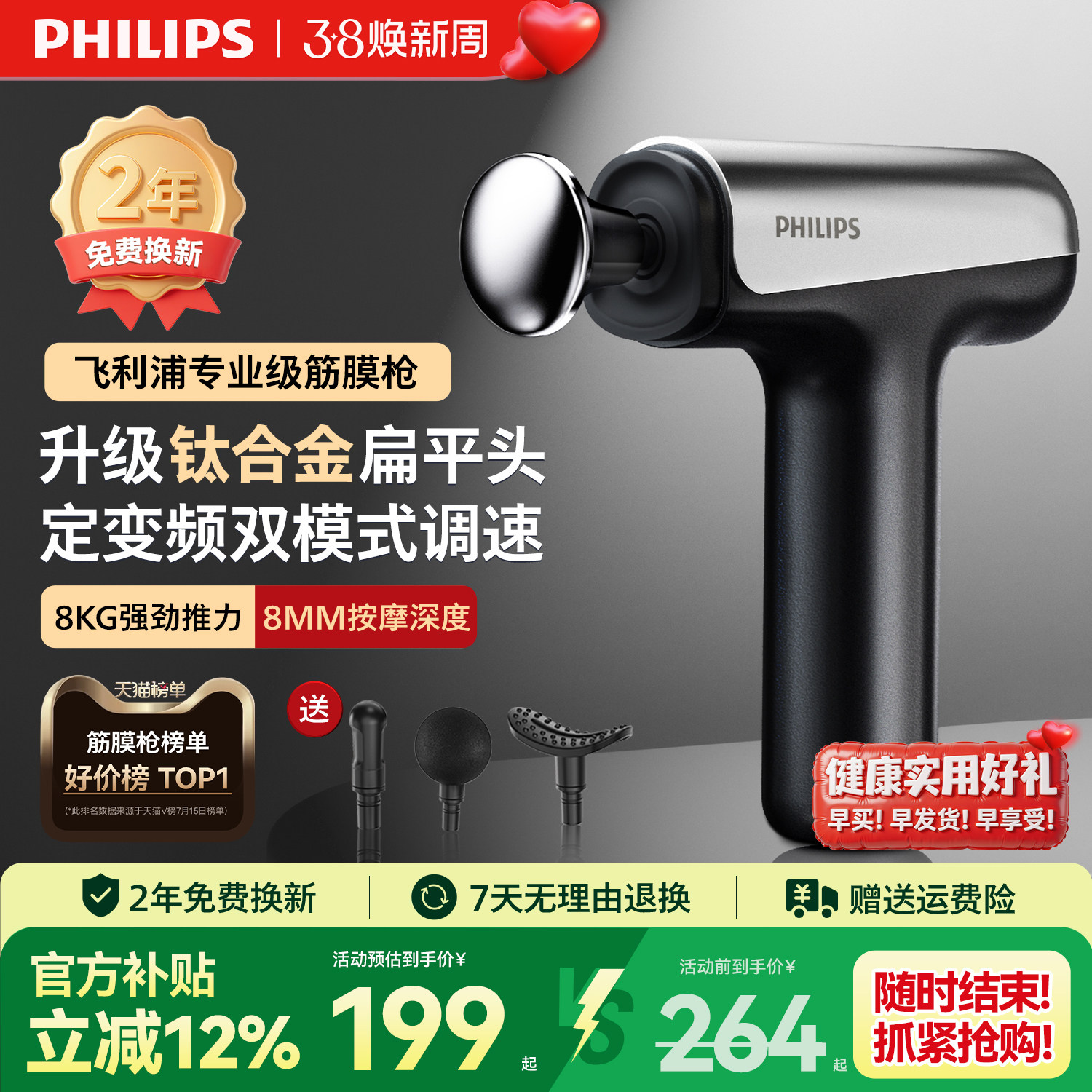 📚 飞利浦小钢炮SE筋膜枪运动健身多功能肌肉按摩器新年三八节礼物