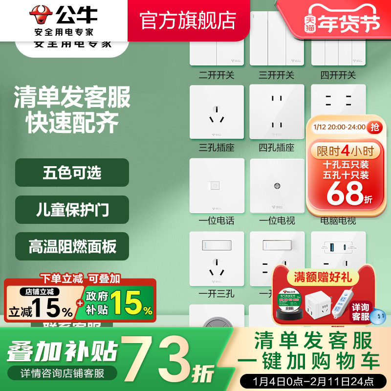 #公牛官方旗舰店 #家用开关插座 #暗装5孔公牛插座 #优惠活动 #好物分享