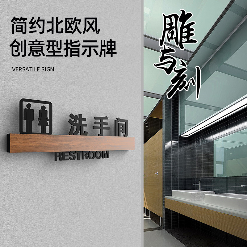 📚 高档洗手间标识牌制作男女卫生间指示牌创意个性公共厕所门牌标志牌订做无障碍牌子请上二楼导向标识标牌定制