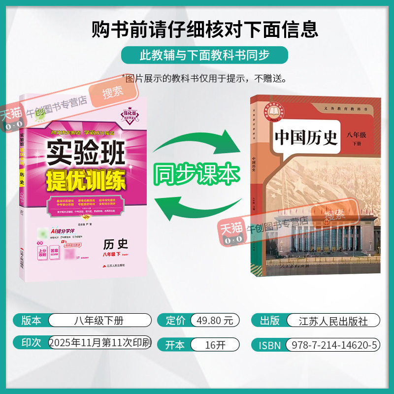 📚 2026春新版实验班提优训练八下历史人教版 初中初二8八年级下册教材同步课时训练课后练习题册一课一练巩固拔尖培优资料书春雨教育