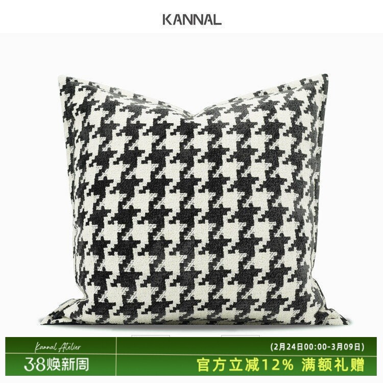 📚 『素年锦时』黑白色大千鸟格棉麻靠垫北欧抱枕样板间别墅方枕