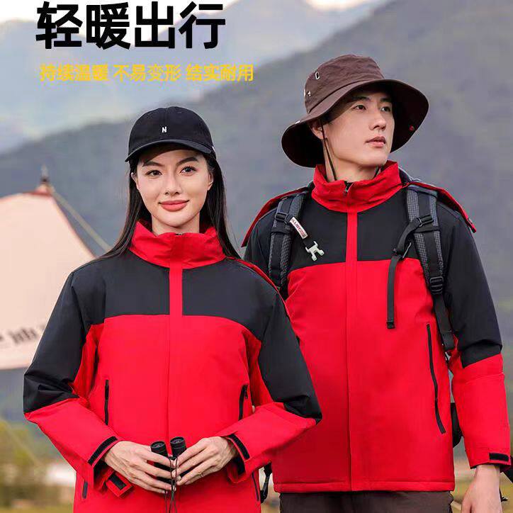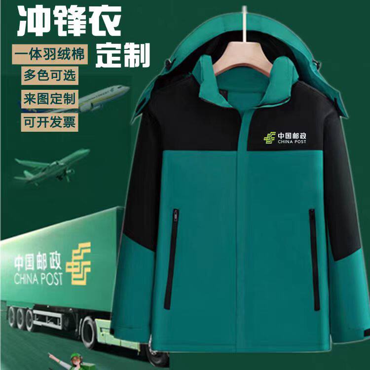📚 一体羽绒棉冲锋衣定制中国邮政工作服外套印logo防水防风户外工装
