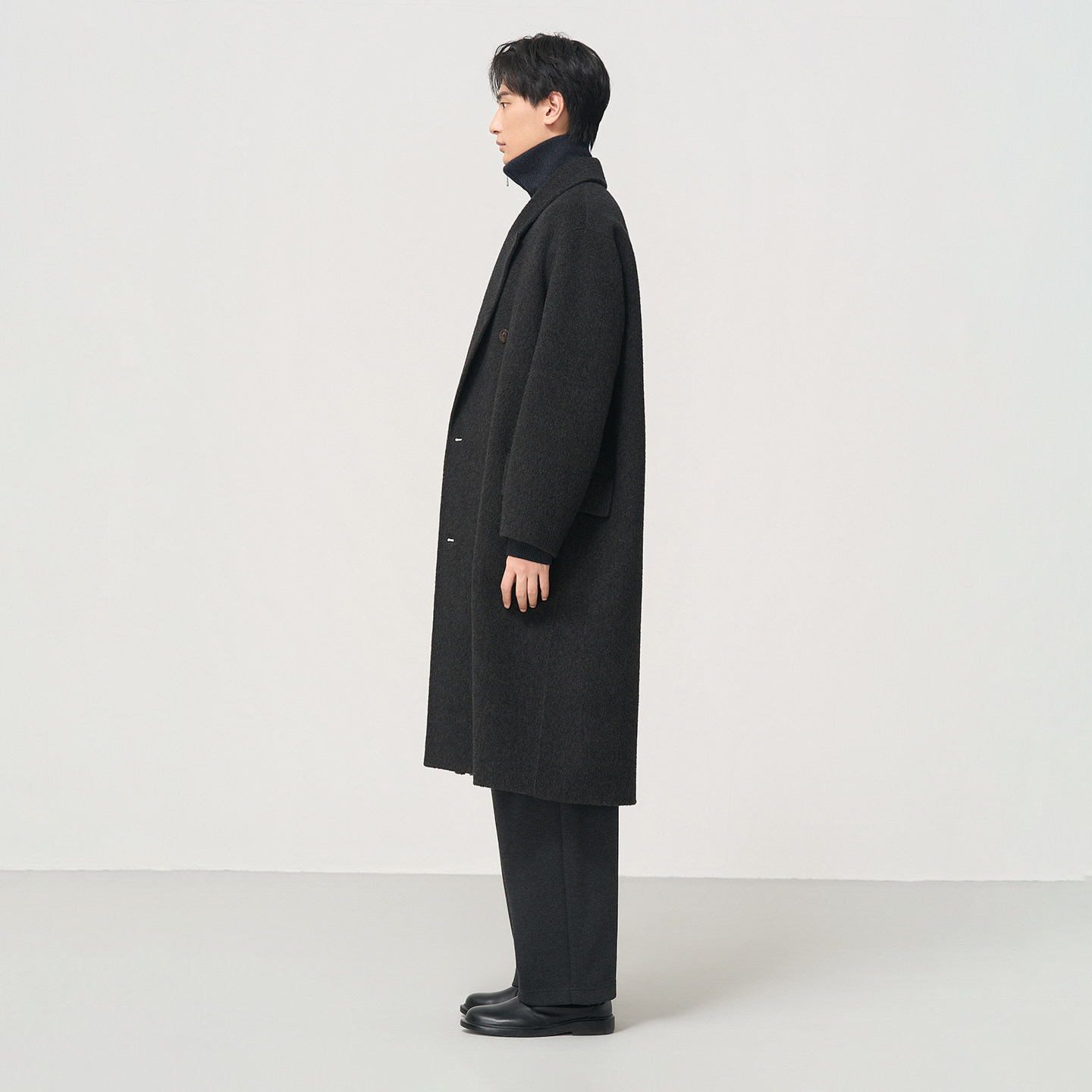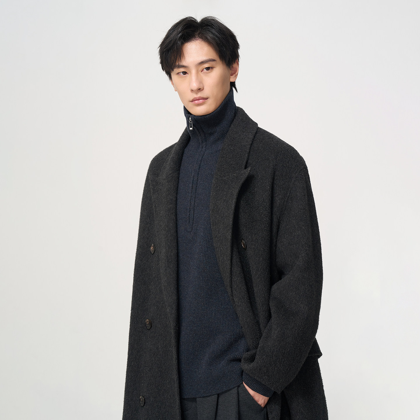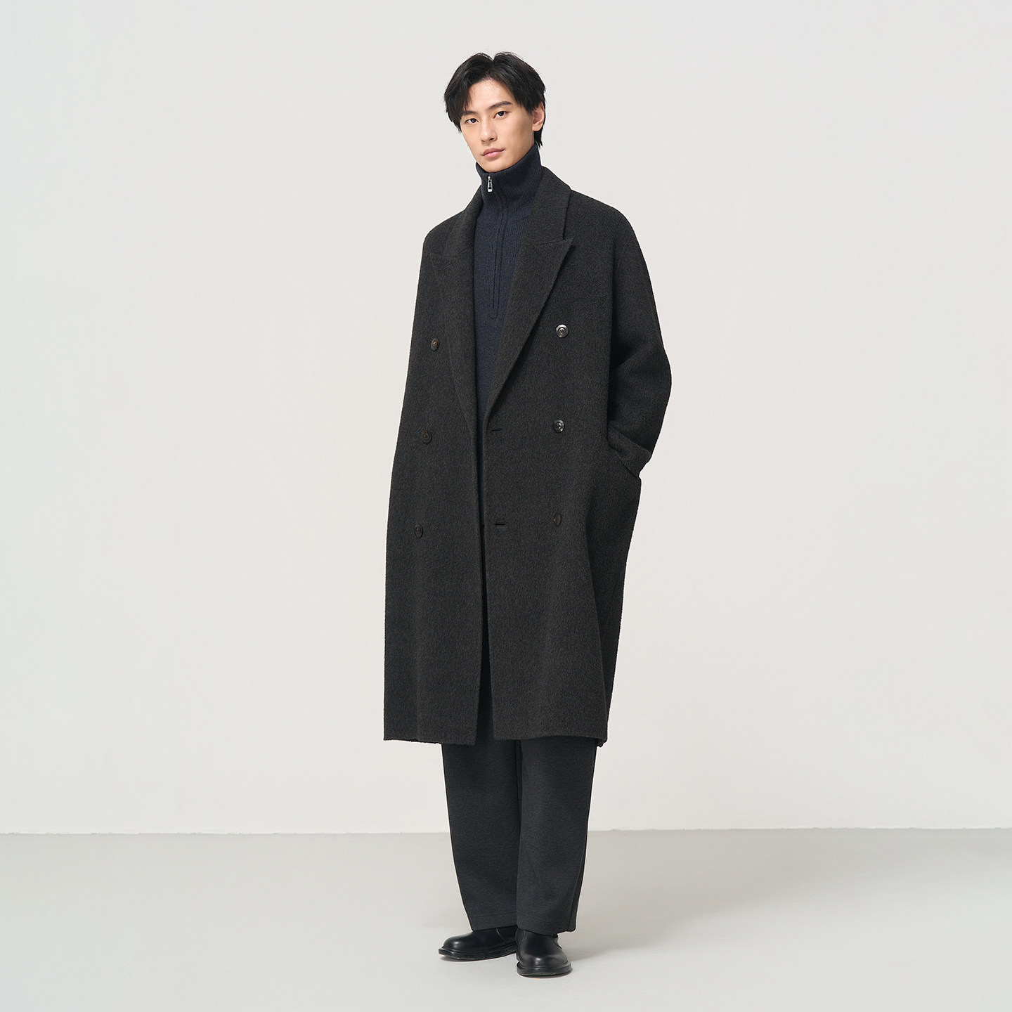 📚 石见山高端牦牛绒绵羊毛双面呢外套男士长款翻领宽松男款毛呢大衣