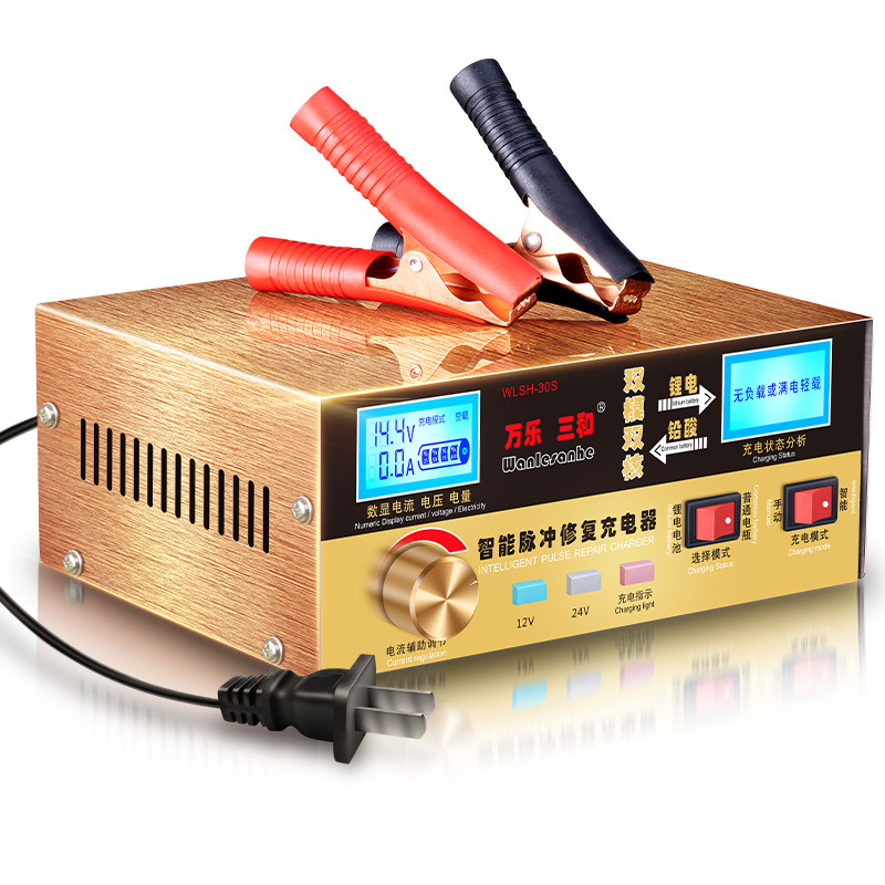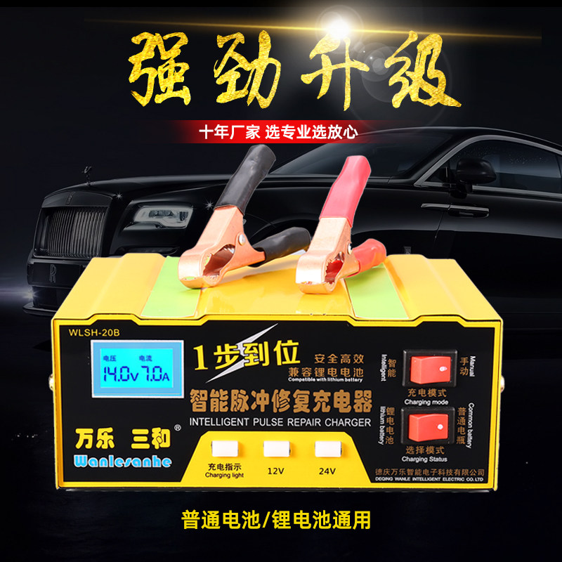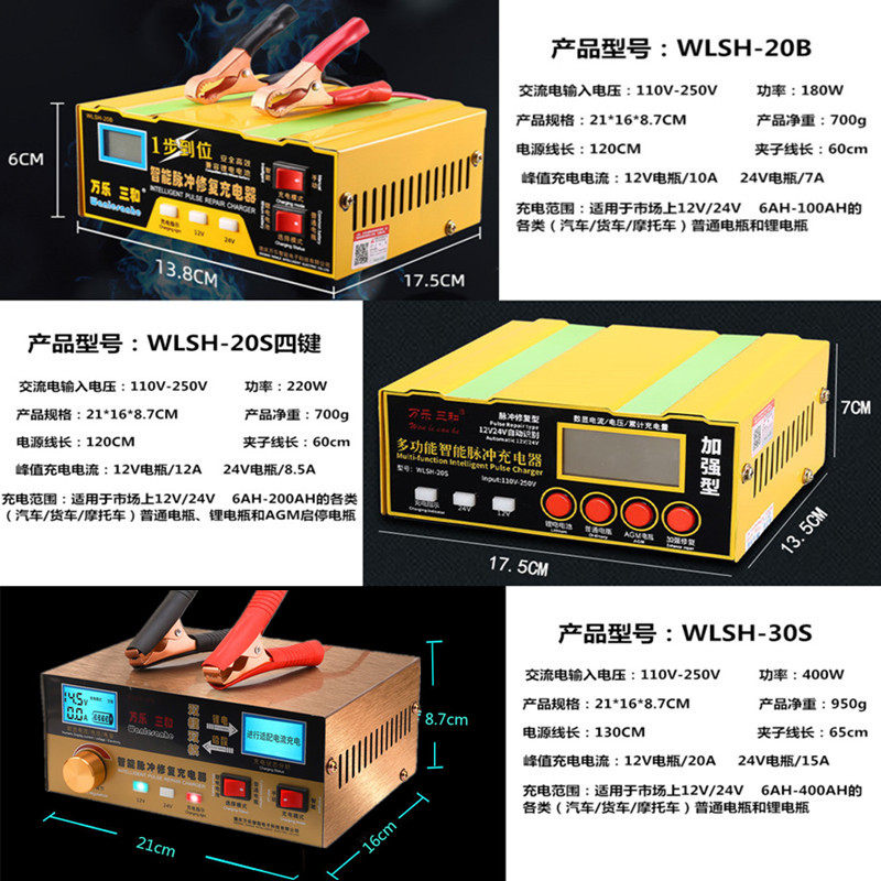 📚 万乐三和汽车电瓶充电器12V24V全自动智能脉冲修复铅酸通用充电机