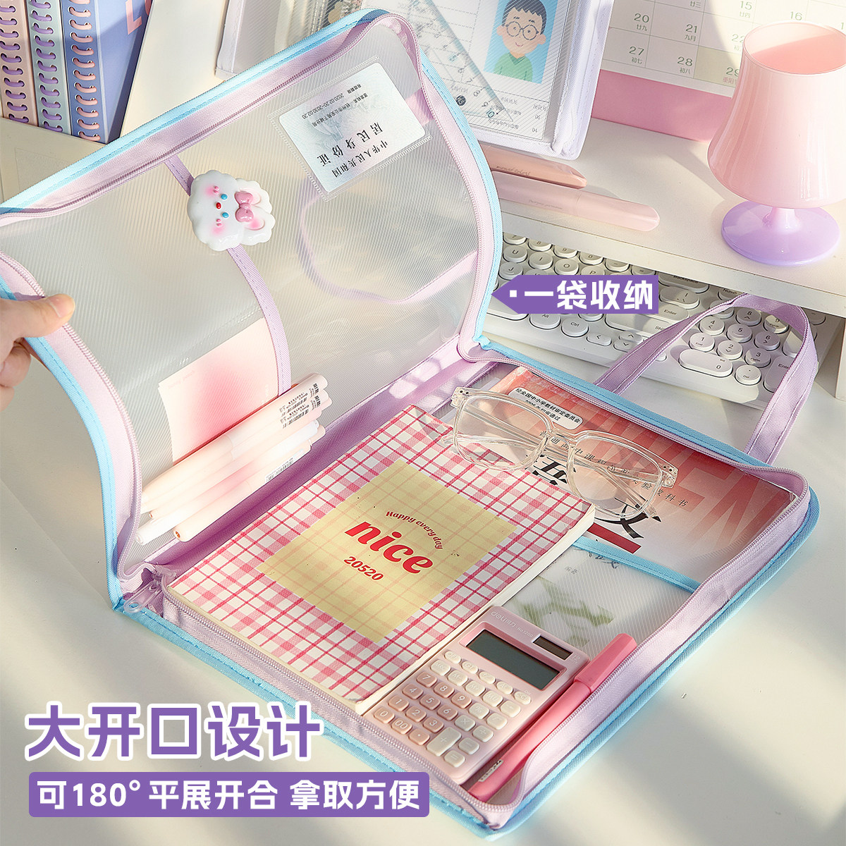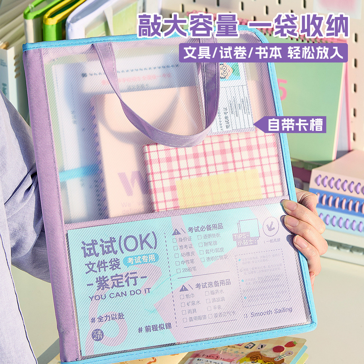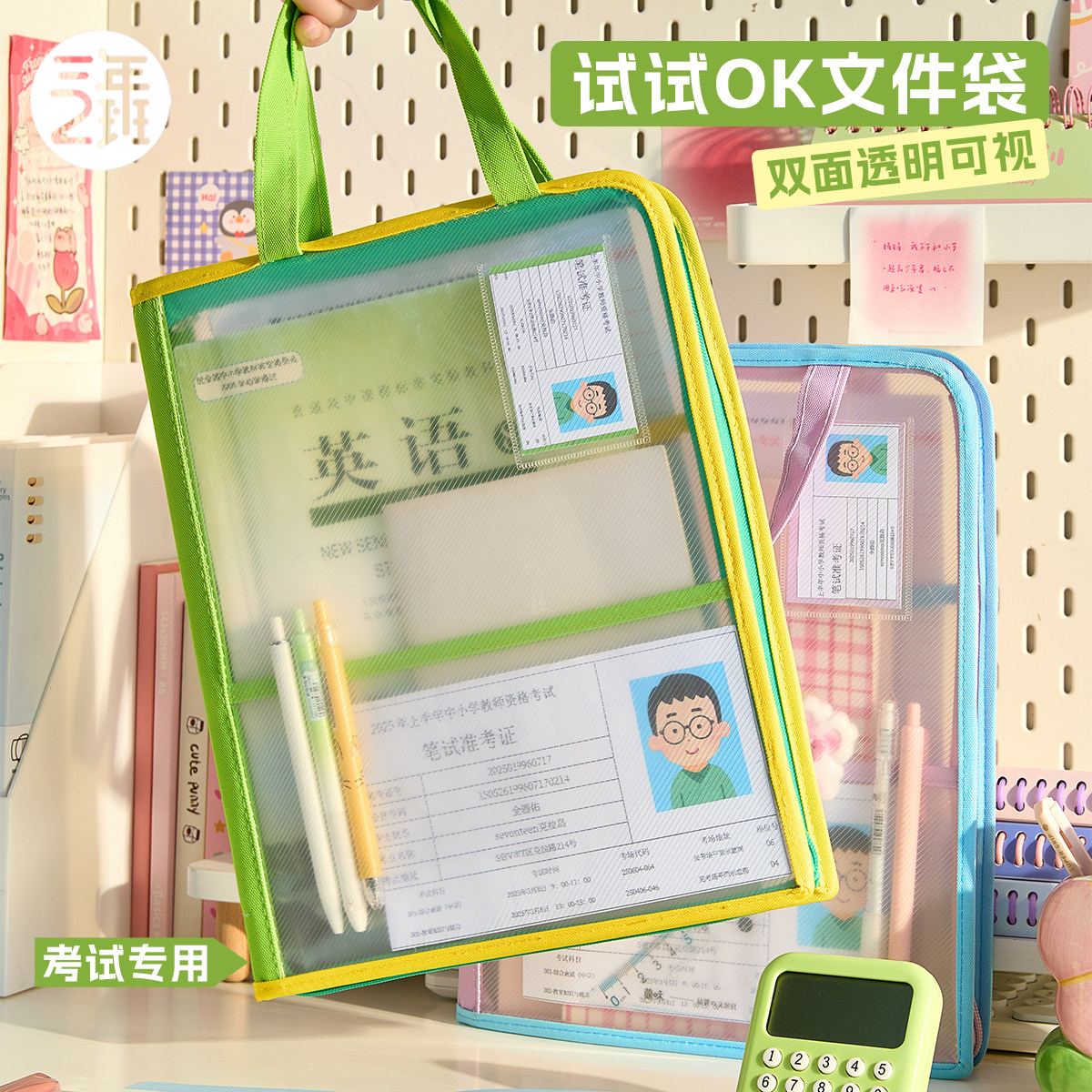 📚 三年二班 试试OK科目袋分类透明文件袋大容量补习袋多层手提袋小学生拎书初中生高颜值试卷资料收纳整理袋子