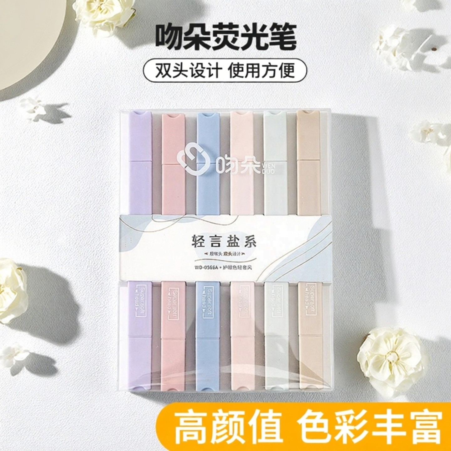 📚 吻朵荧光笔高颜值轻言盐系轻言甜系护眼彩色双头荧光标记笔学生用