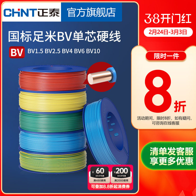 📚 正泰电线家用纯铜国标BV1.5 2.5 4 6平方单铜芯铜线装修家装电缆