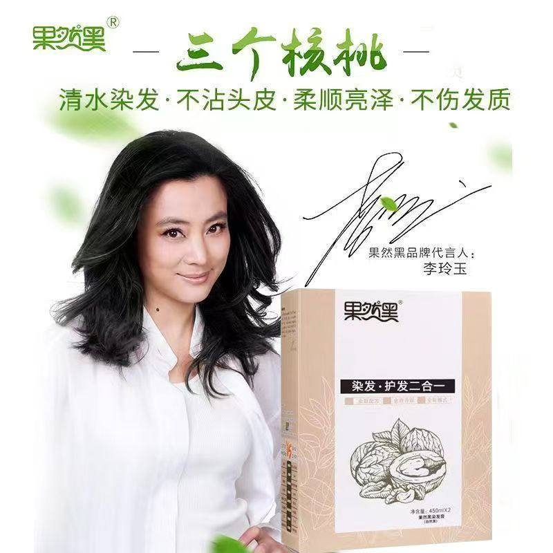📚 果然黑3个核桃植物染发剂450ml*2黑油染色清水芳香无氨不沾头皮