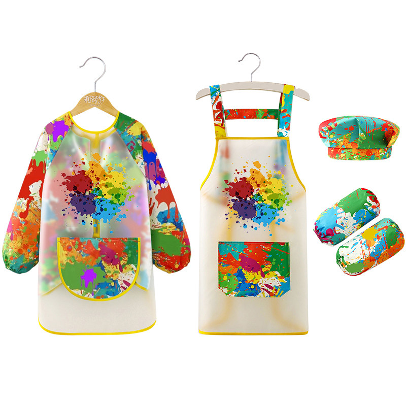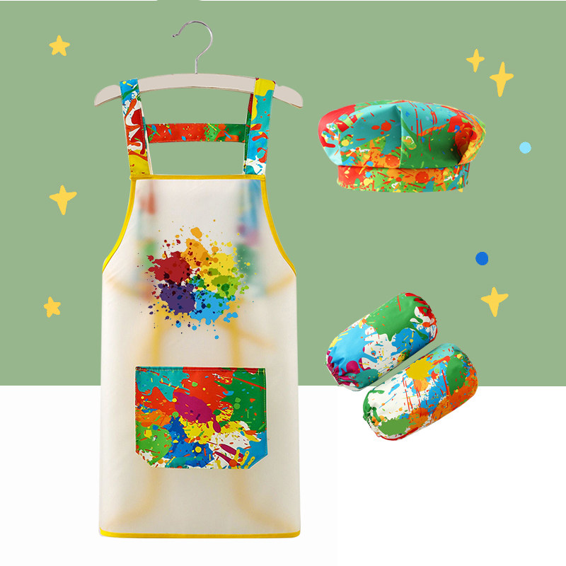 📚 儿童防水画画罩衣围裙三件套厨师帽幼儿园定制LOGO美术生画室专用