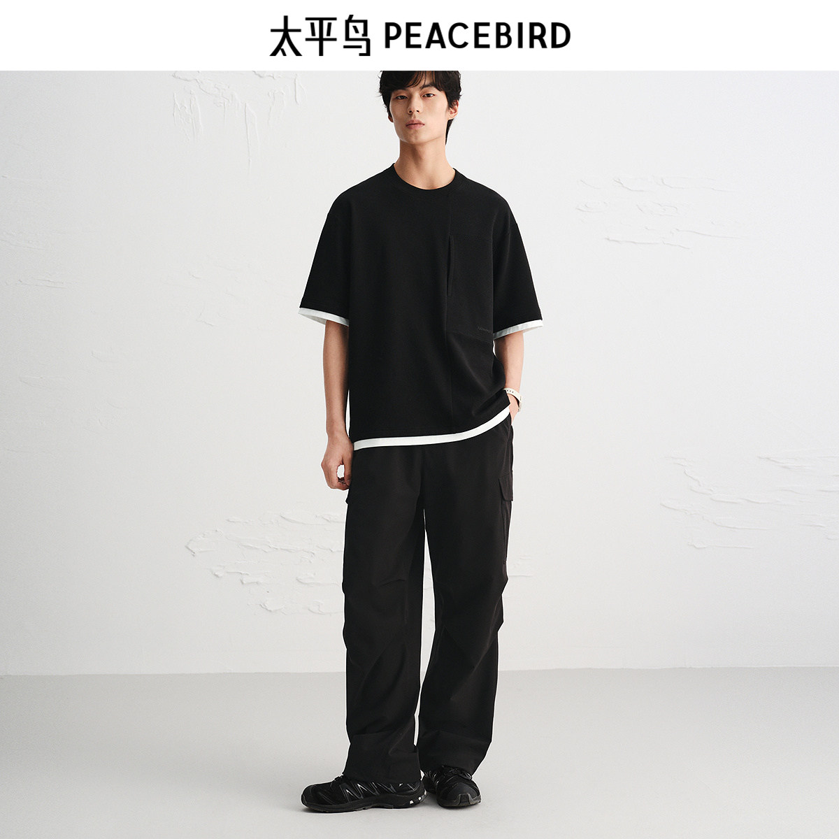 📚 【商场同款】太平鸟男装 黑色伞兵裤潮流高弹力休闲裤男B2GLF3228