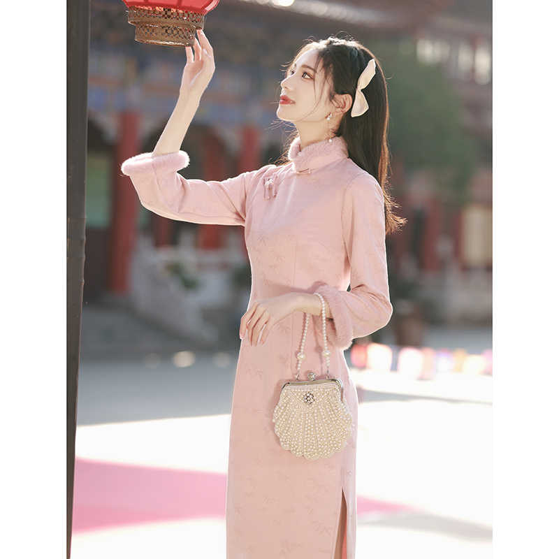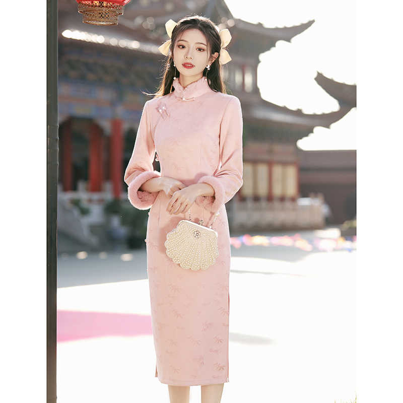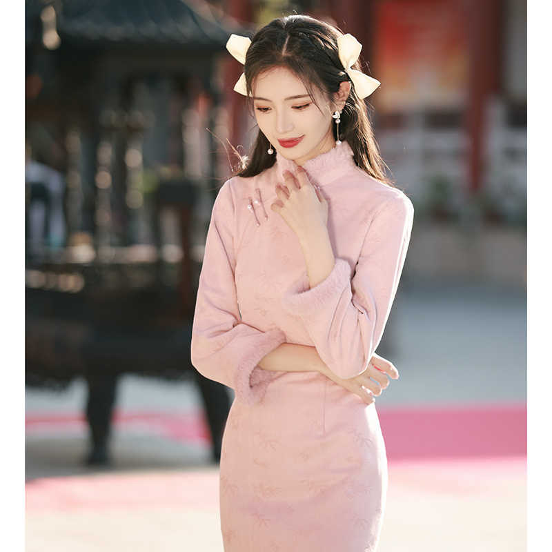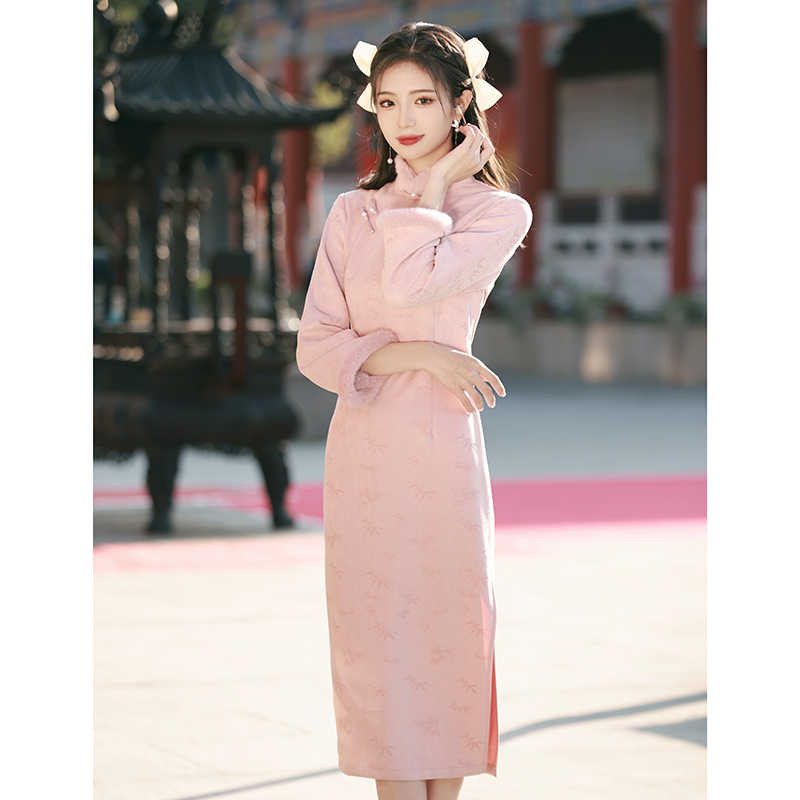 #冬季旗袍 #粉色连衣裙 #复古改良 #年轻时尚 #券后价89.9 #好物分享