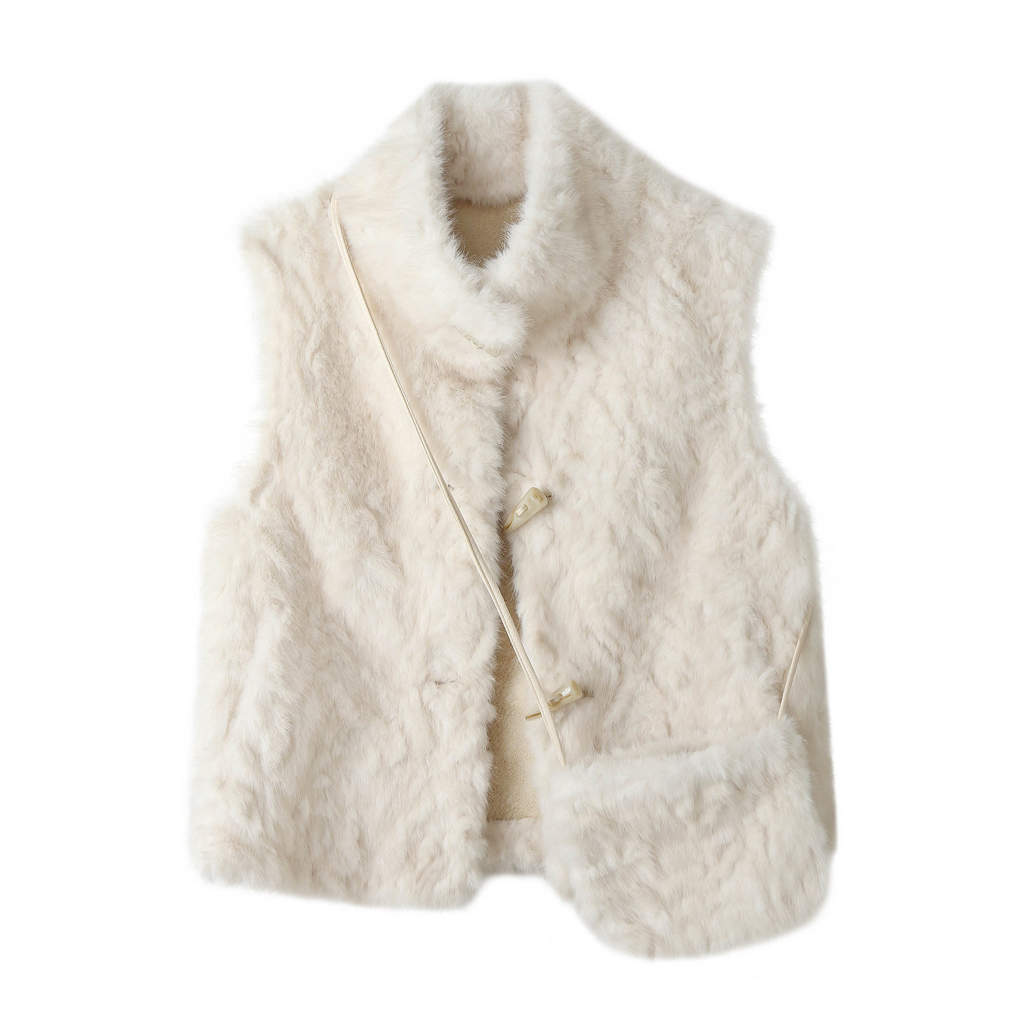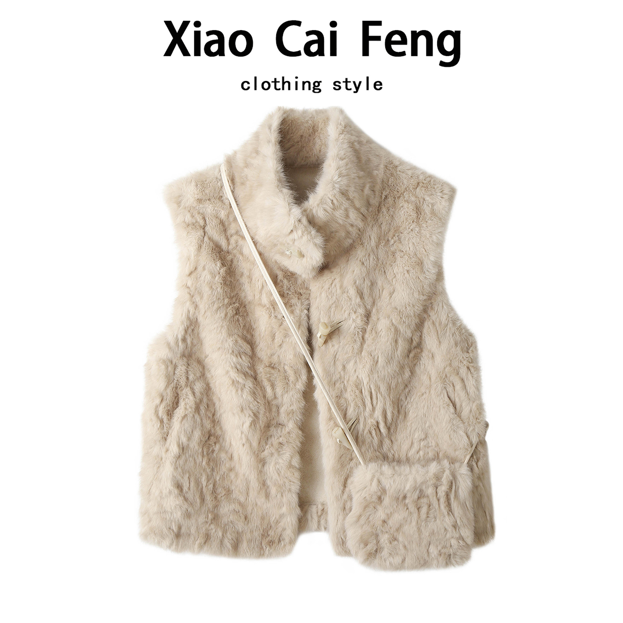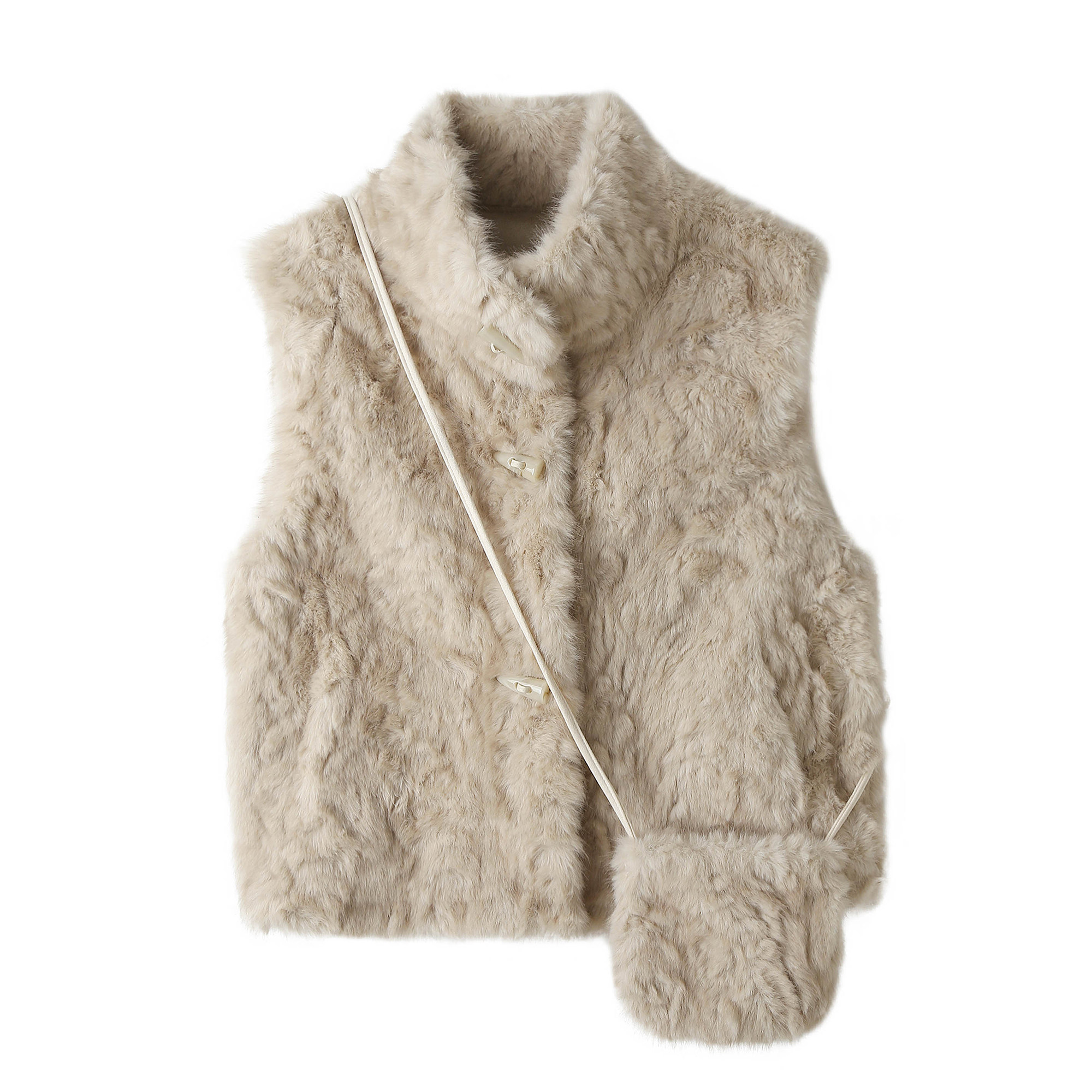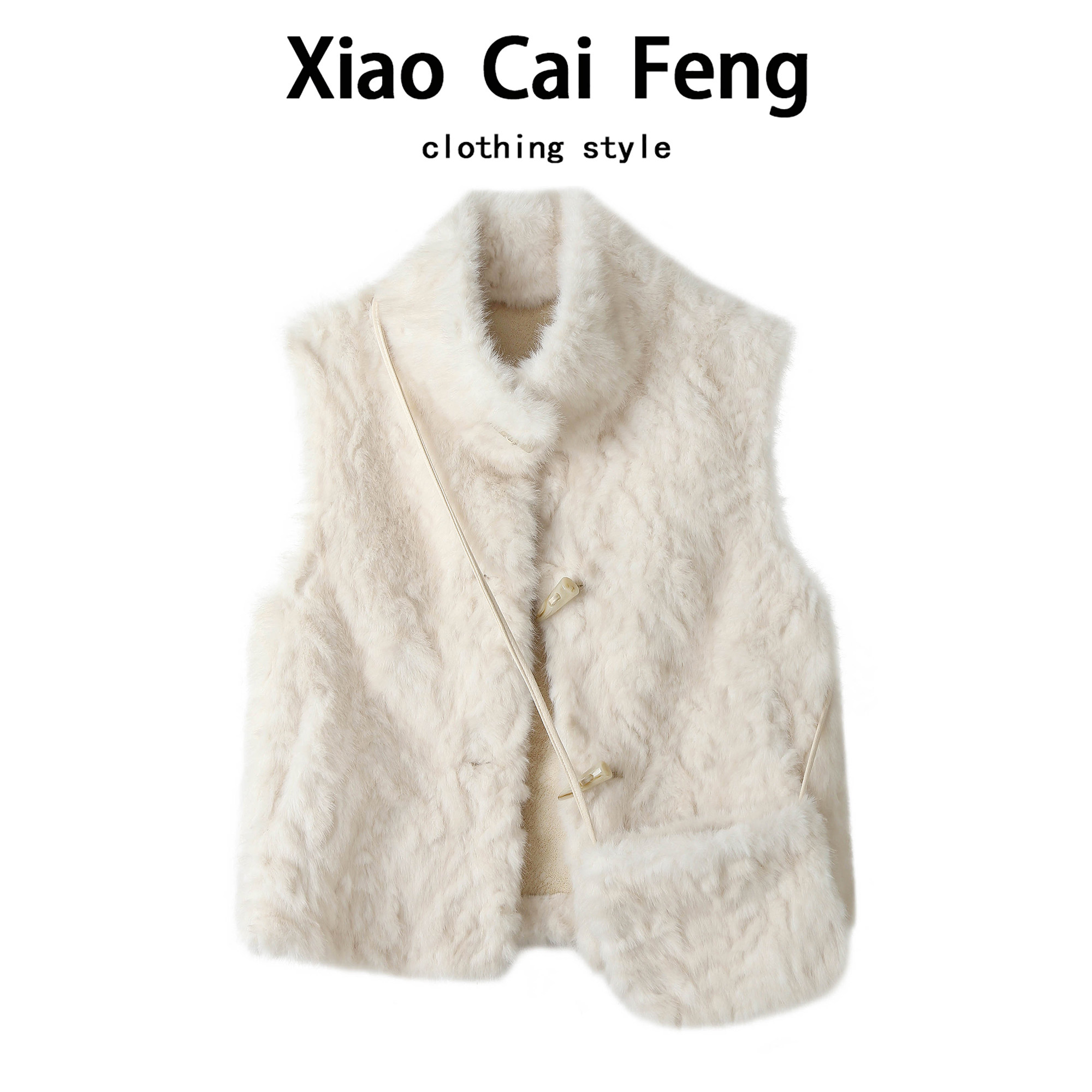 📚 法式立领毛绒绒马甲外套女冬季保暖皮草牛角扣上衣软糯短款背心潮
