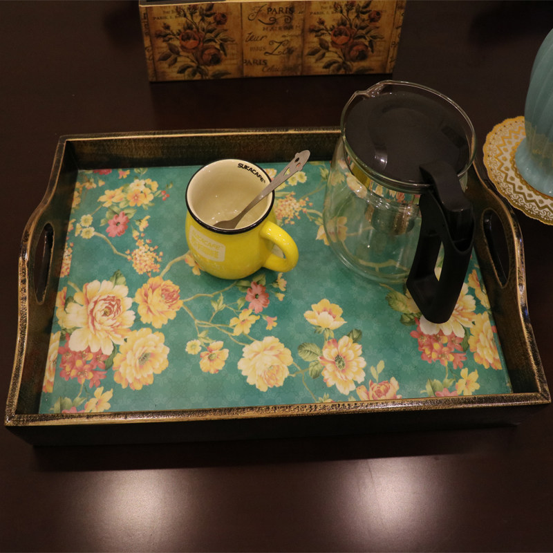 📚 欧雅居美式托盘木质长方形杯子盘茶几创意田园风格水果盘酒店商用