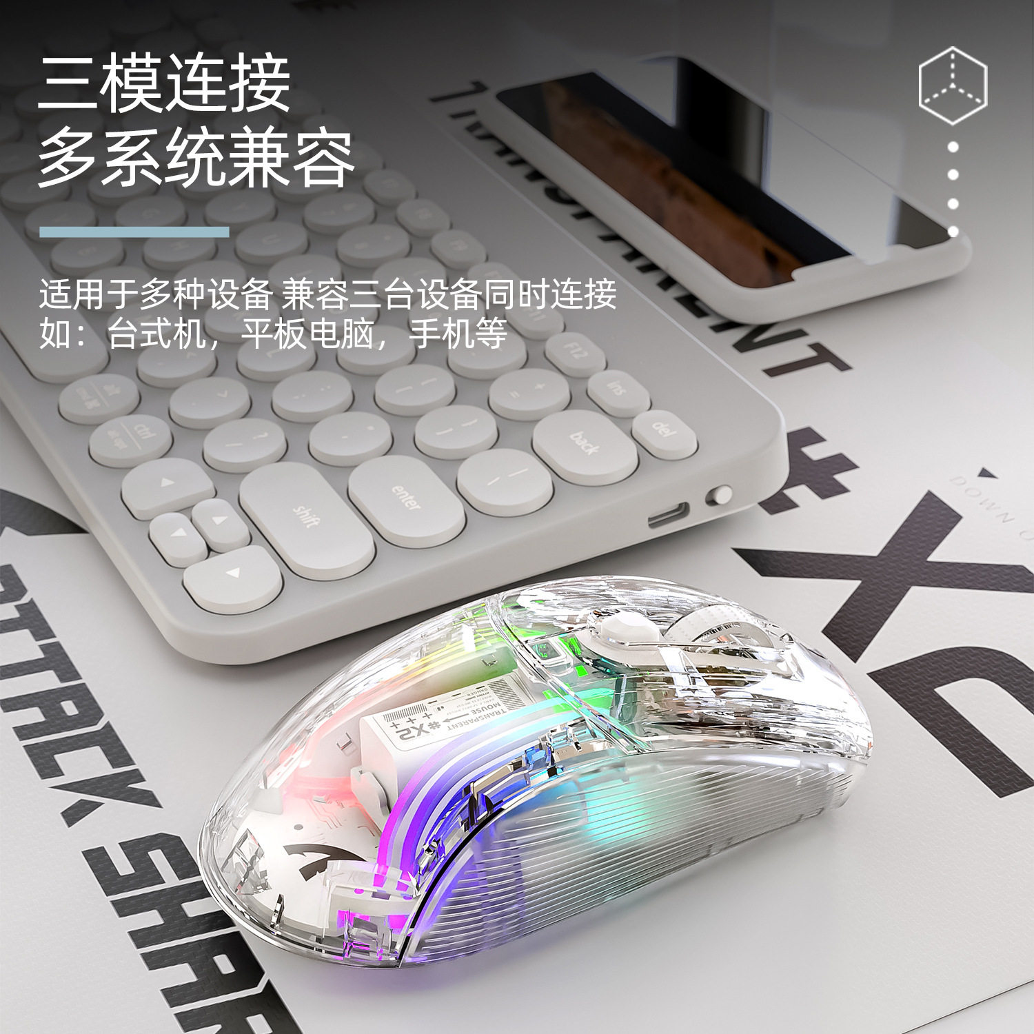 📚 Attack Shark 攻击鲨X2RGB三模无线鼠标轻量化电竞游戏蓝牙鼠标