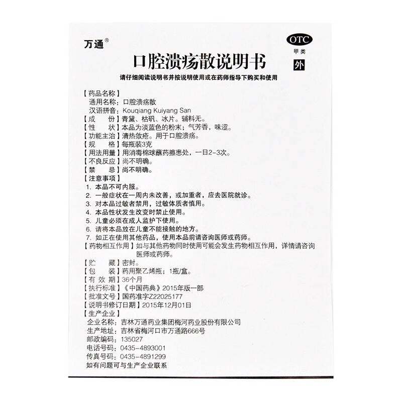 📚 万通口腔溃疡散 3g咽喉肿痛复发性口腔溃疡消炎口舌生疮非瑞和cc