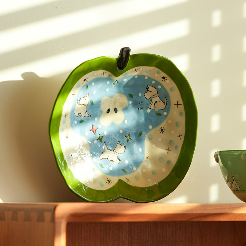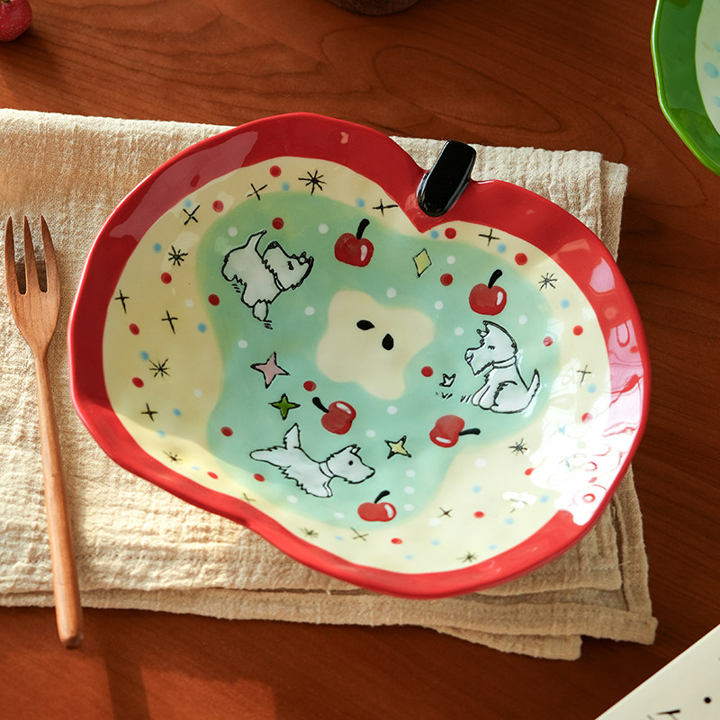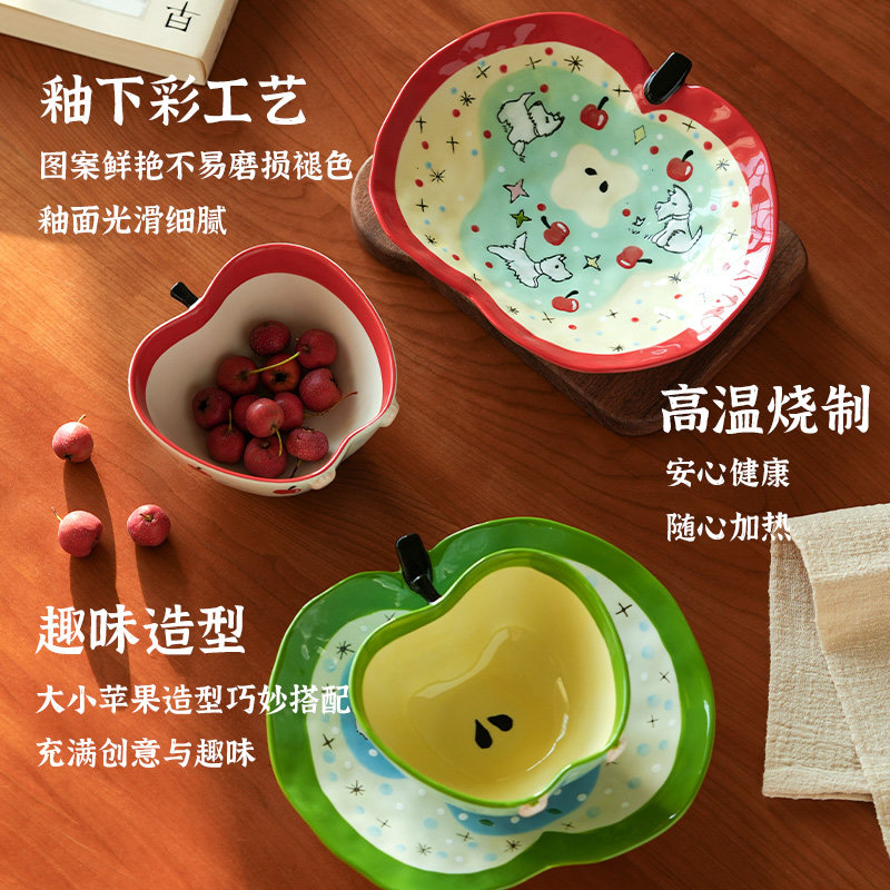 📚 肆月餐盘陶瓷沙拉盘釉下彩手绘红苹果碟子甜品盘水果盘一人食餐具