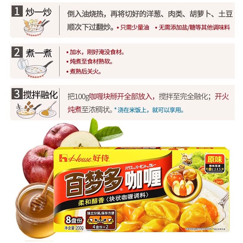 📚 适用好侍百梦多原味微辣黄咖喱块状家用日式椰香咖喱酱汤料理包