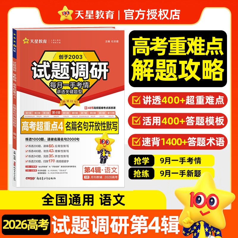 📚 【新华文轩】暂2025-2026年试题调研 第4辑 语文 名篇名句开放性默写 杜志建 正版书籍 新华书店旗舰店文轩官网 新疆青少年出版社