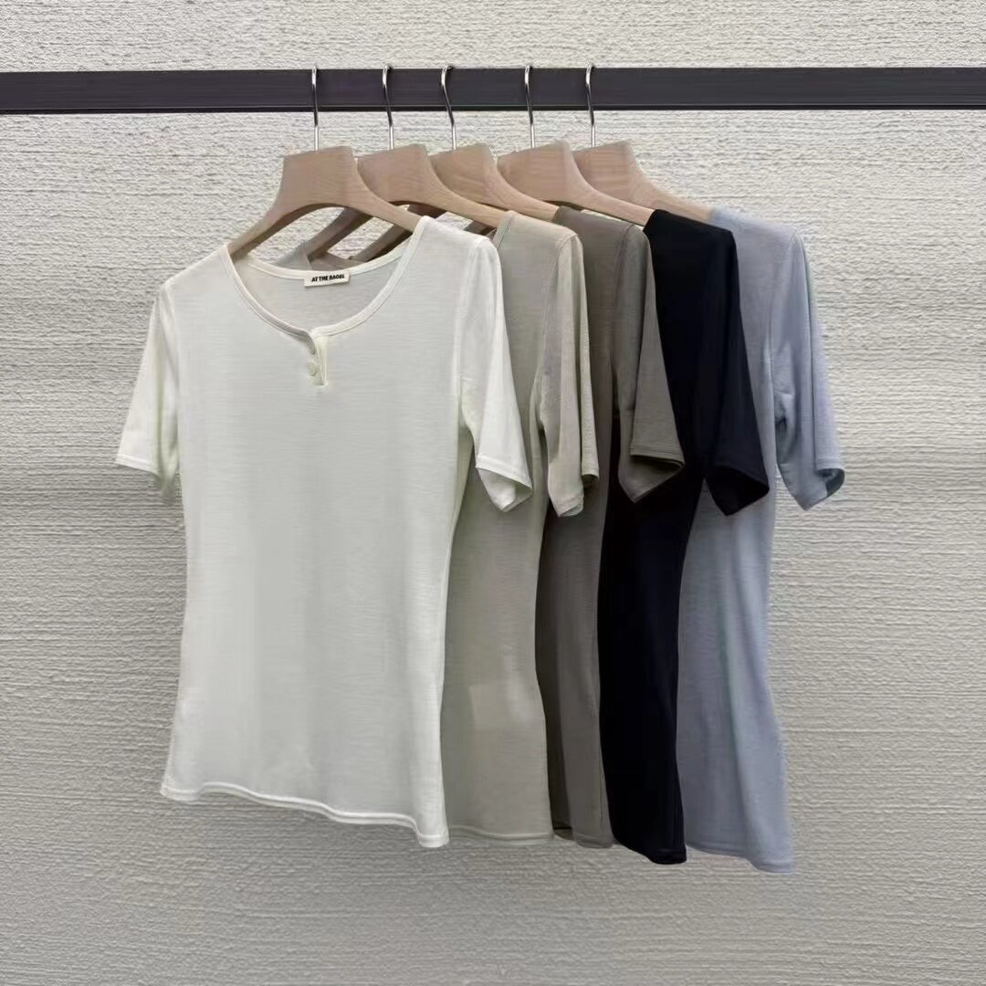 📚 现~2025夏季新款女芯宝韩国代购at the bagel百搭圆领背心短袖T恤