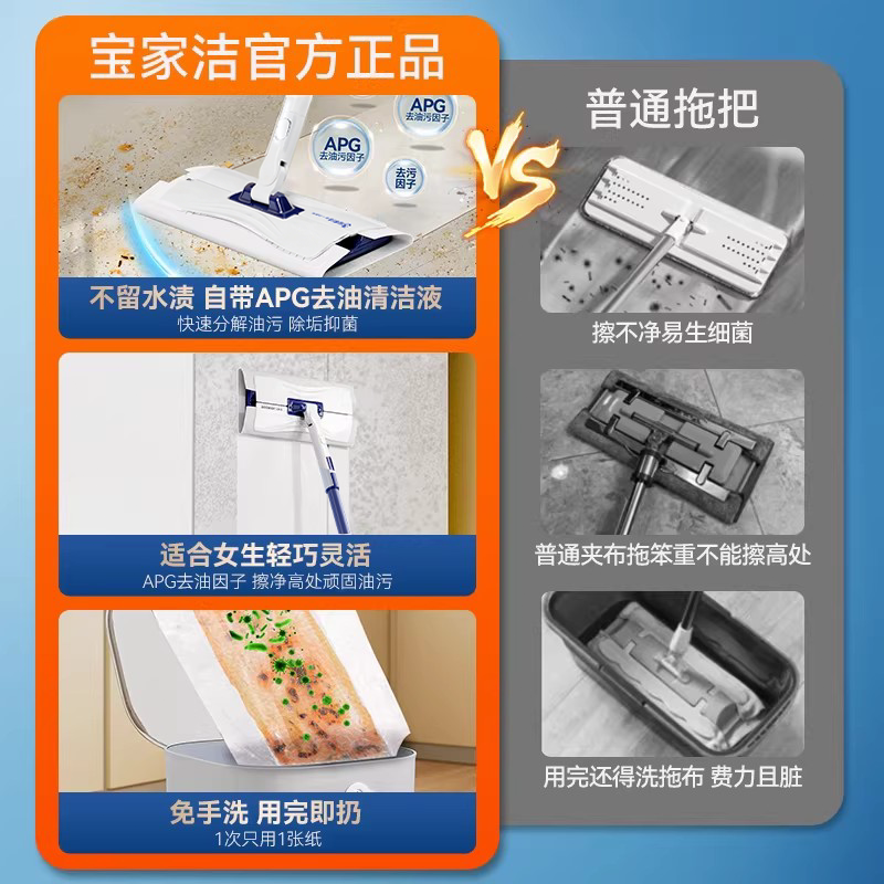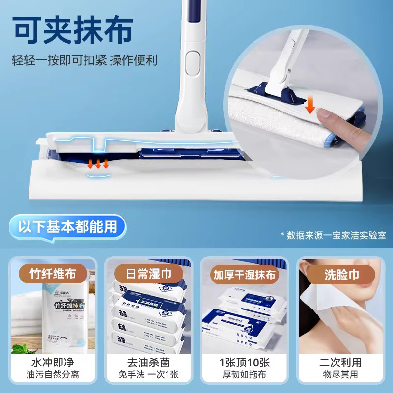📚 宝家洁家用懒人拖布厨房去油抹布拖地一拖净夹布洗脸巾平板拖把