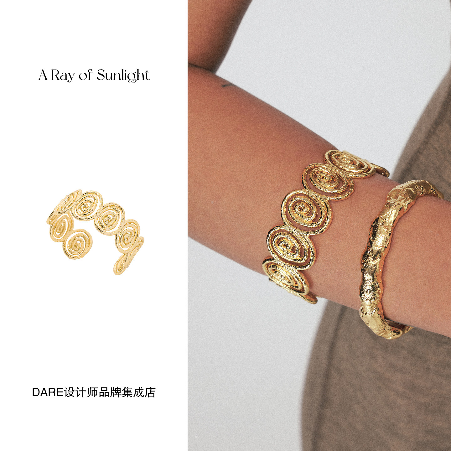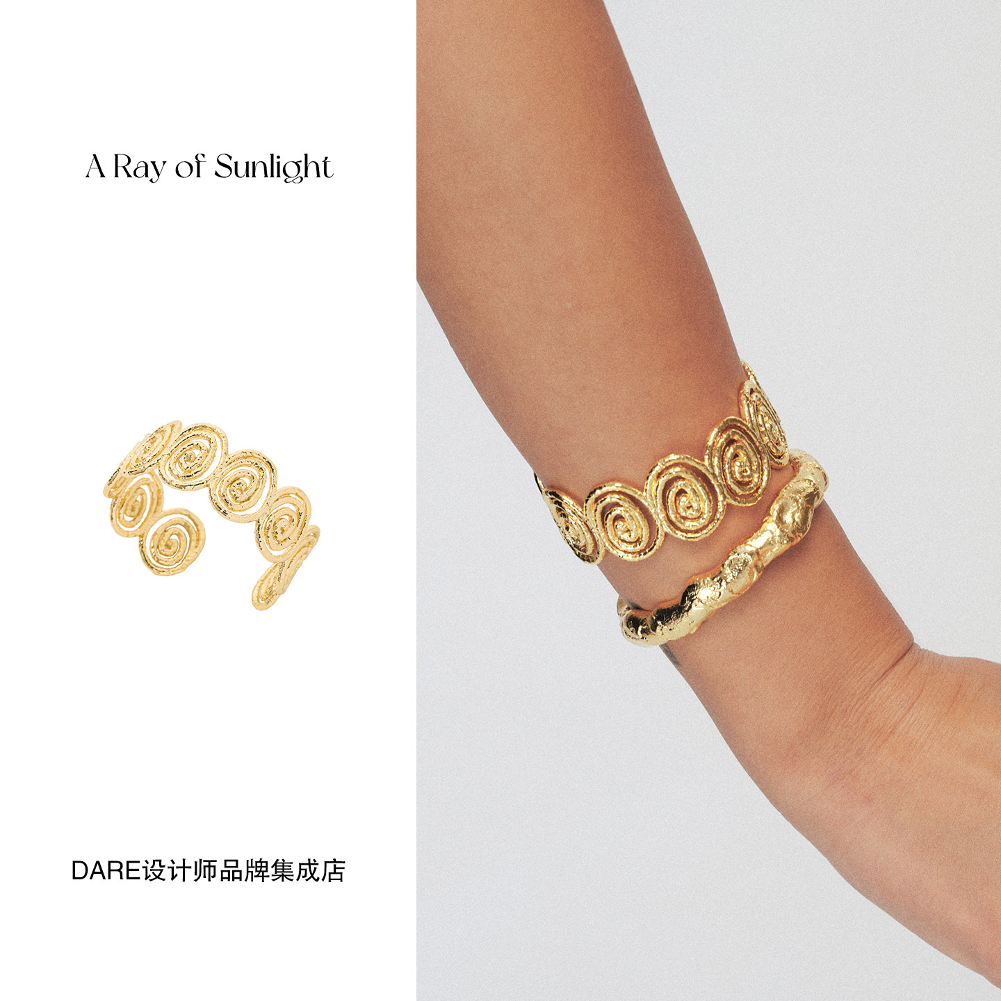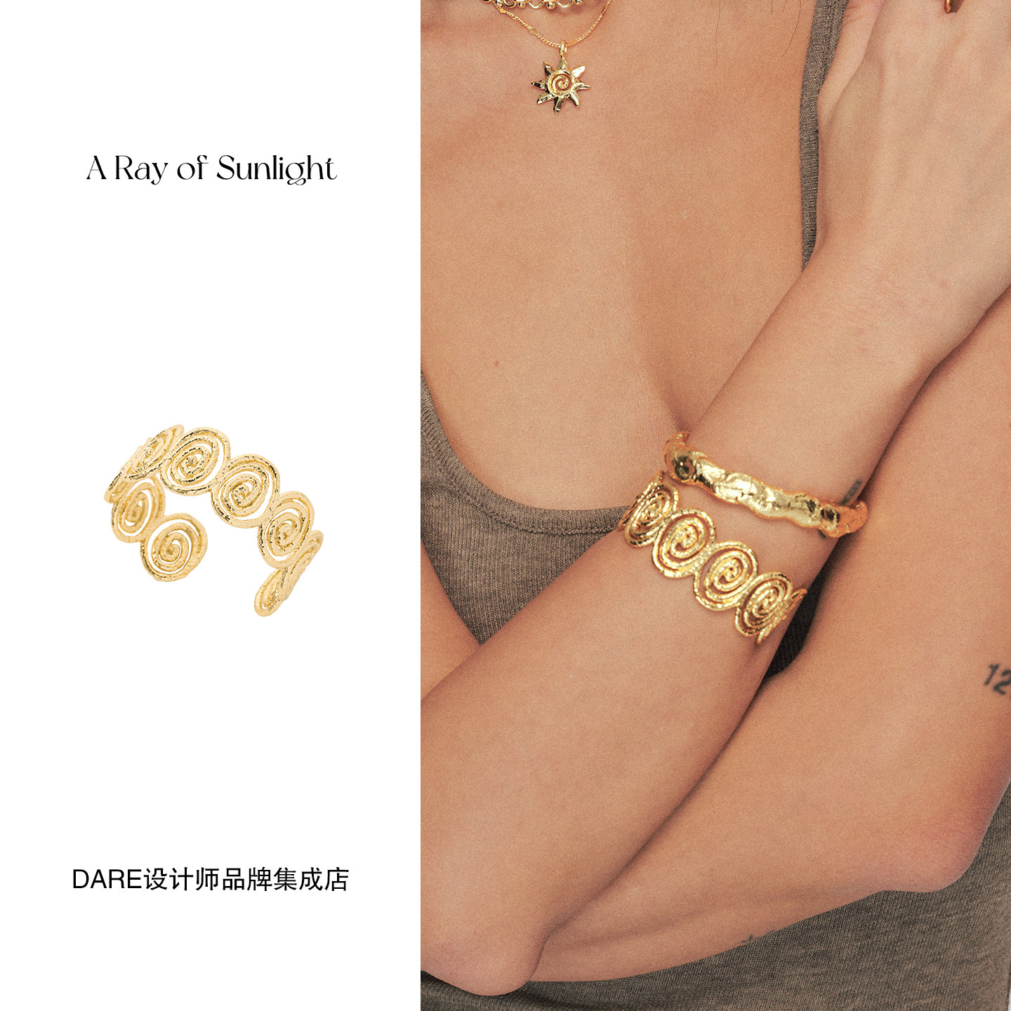 📚 Dare买手店 A ray of sunlight循环手镯金色复古欧美度假首饰原创