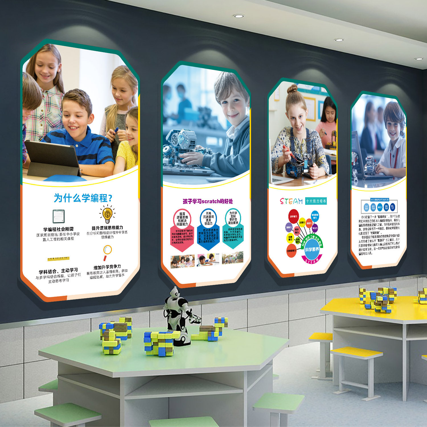 📚 少儿编程机构装饰机器人环创文化互动墙贴纸科技主题教室氛围布置