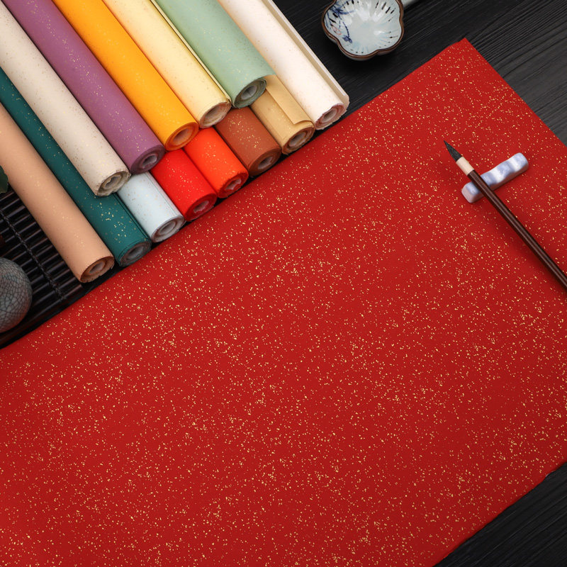 📚 宝云轩四尺六尺对开蜡染鱼籽金半生熟宣纸书法作品用纸仿古万年红宣纸学生毛笔书法国画小楷行书作品国展用纸
