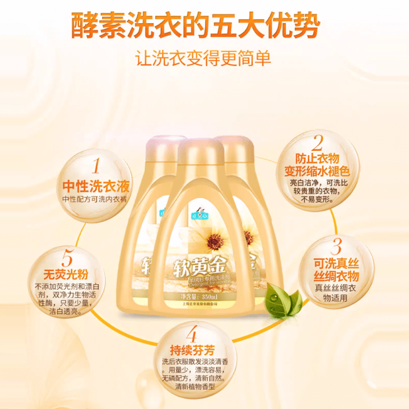 📚 正章羊毛羊绒专用洗涤剂500mL大瓶装无磷无荧光粉防缩水蓬松柔软