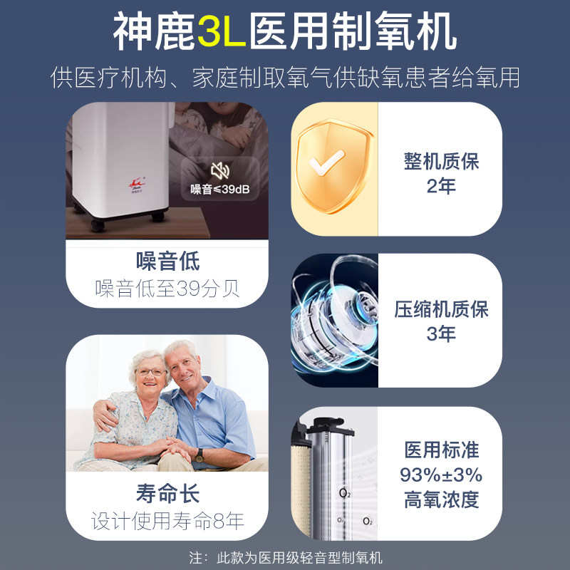 📚 神鹿制氧机家用老人吸氧机医用型3l升轻声小型呼吸雾化一体氧气机