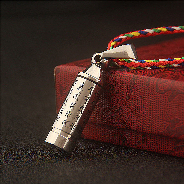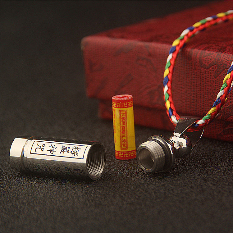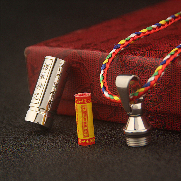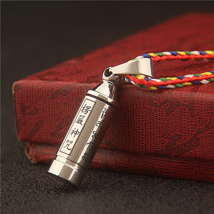 📚 不锈钢防水柱形可打开装朱砂全文楞严咒经文吊坠项链护身符男女款