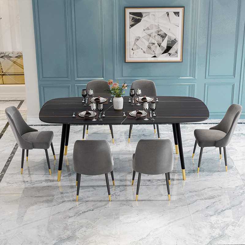📚 岩板大理石餐桌椅组合简约小户型北欧网红轻奢家用吃饭桌子可折叠