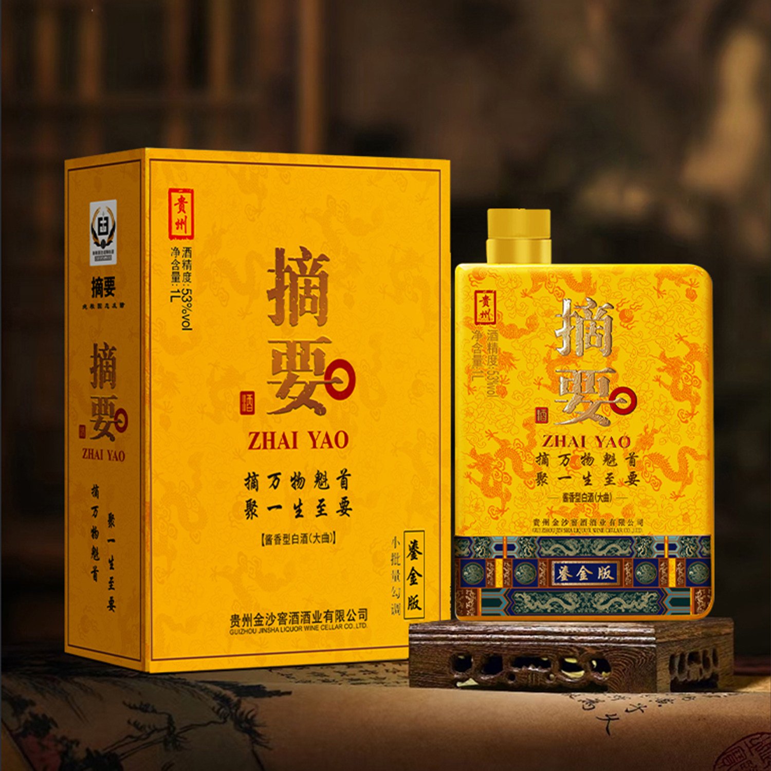 📚 摘要酒鎏金版礼盒帝王金升级53度1000ml酱香型纯粮食酒金沙回沙酒