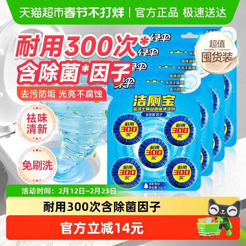 📚 绿伞洁厕剂蓝泡泡50g*5块*4卡洁厕精马桶清洁剂洁厕灵洁厕液