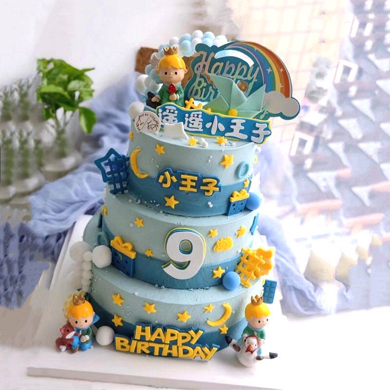 📚 宝宝周岁小王子蛋糕装饰摆件儿童眺望日落玫瑰王子生日蛋糕玩偶