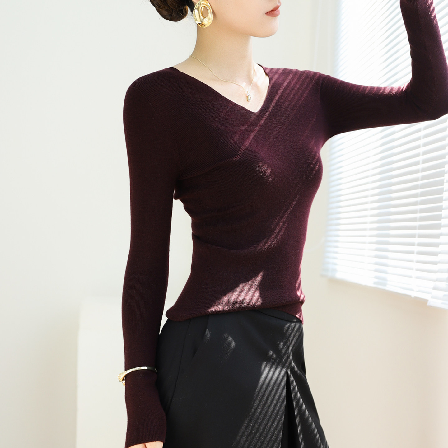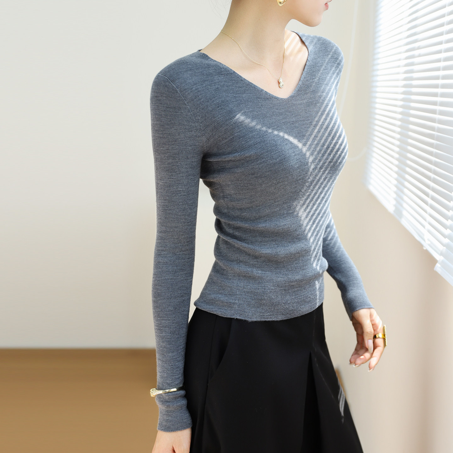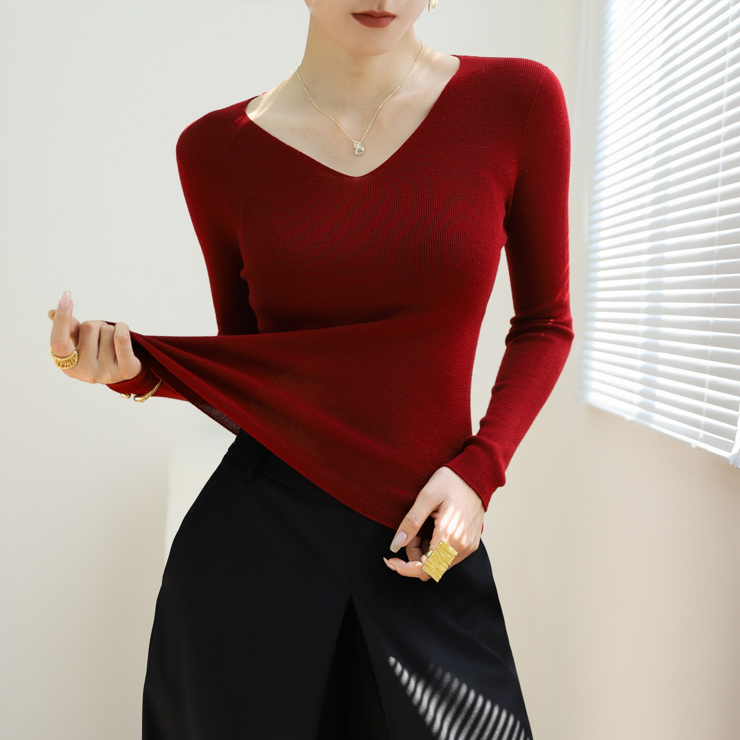📚 扬子纱羊毛针织打底衫女内搭灰色V领爆款高端超好看软糯修身上衣
