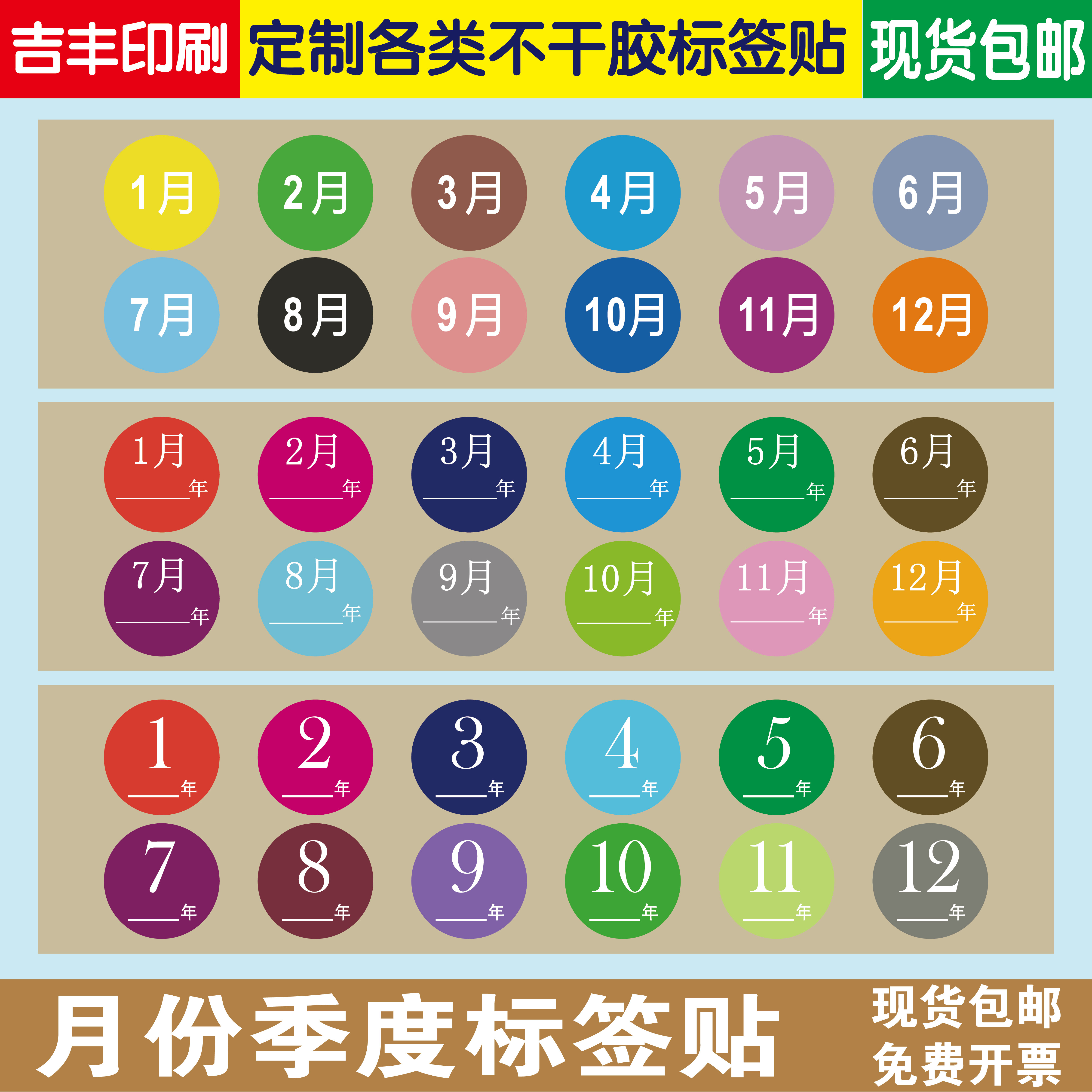 📚 圆形月份季度仓库先进先出不干胶标签贴三种规格现货可定制