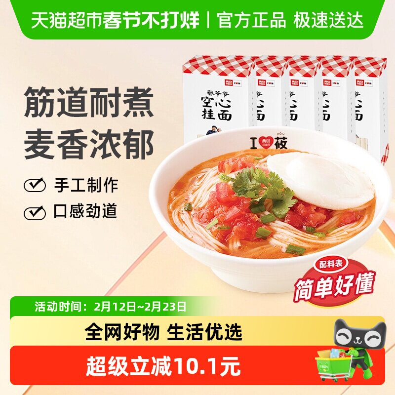 📚 西贝莜面村张爷爷手工空心挂面500g*5盒劲道细挂面早餐面点面条
