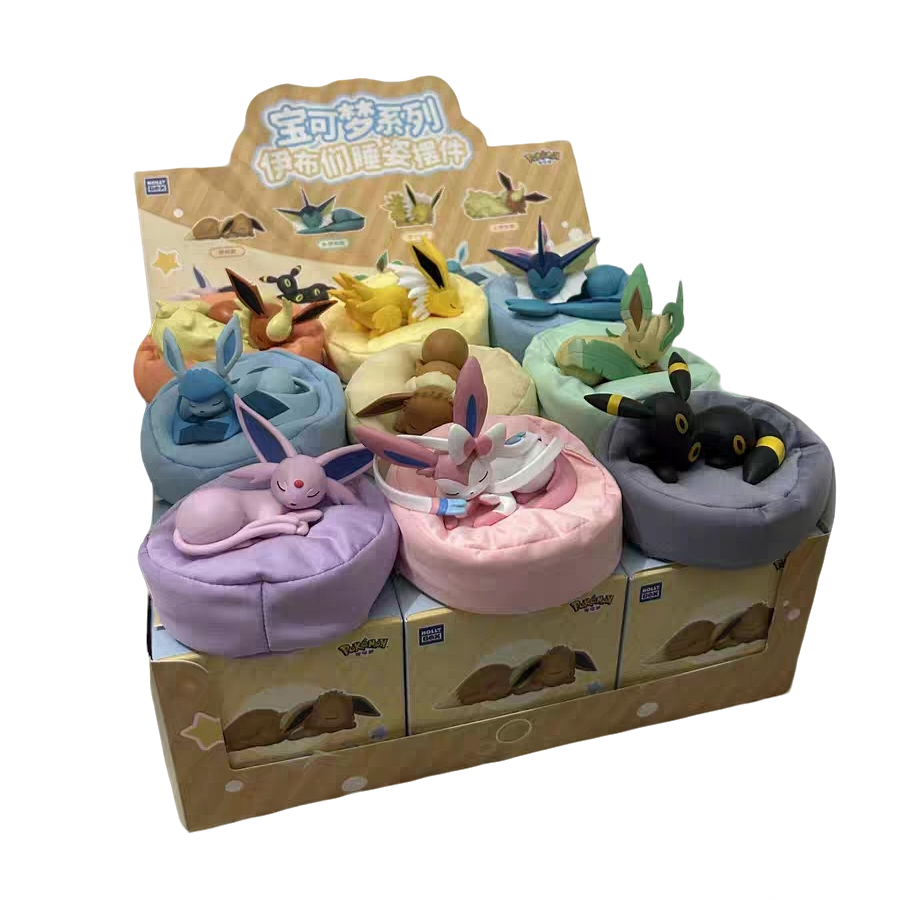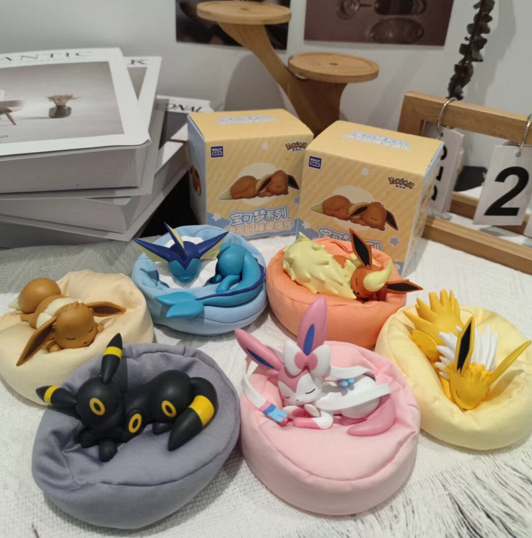 📚 伊布家族睡姿盲盒宝可梦睡眠手办仙子叶月伊布摆件玩偶模型正版