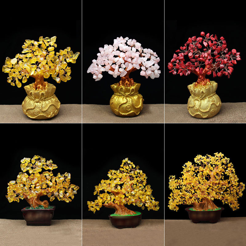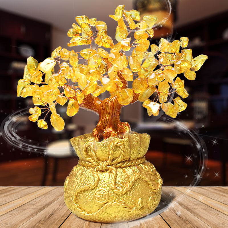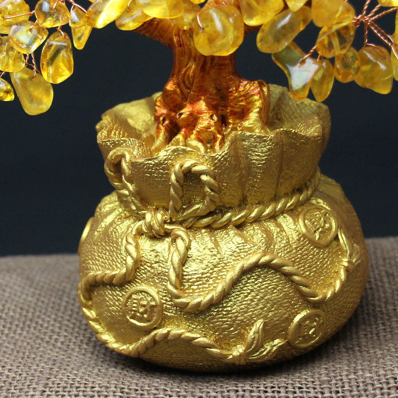 📚 泰山福缘阁 黄水晶摇钱树摆件 金钱树家居工艺饰品摆件