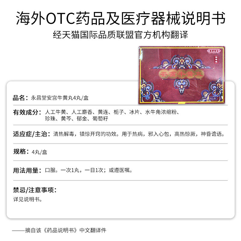 📚 安宫牛黄丸香港版中风清热解毒脑出血香港进口正品永昌堂