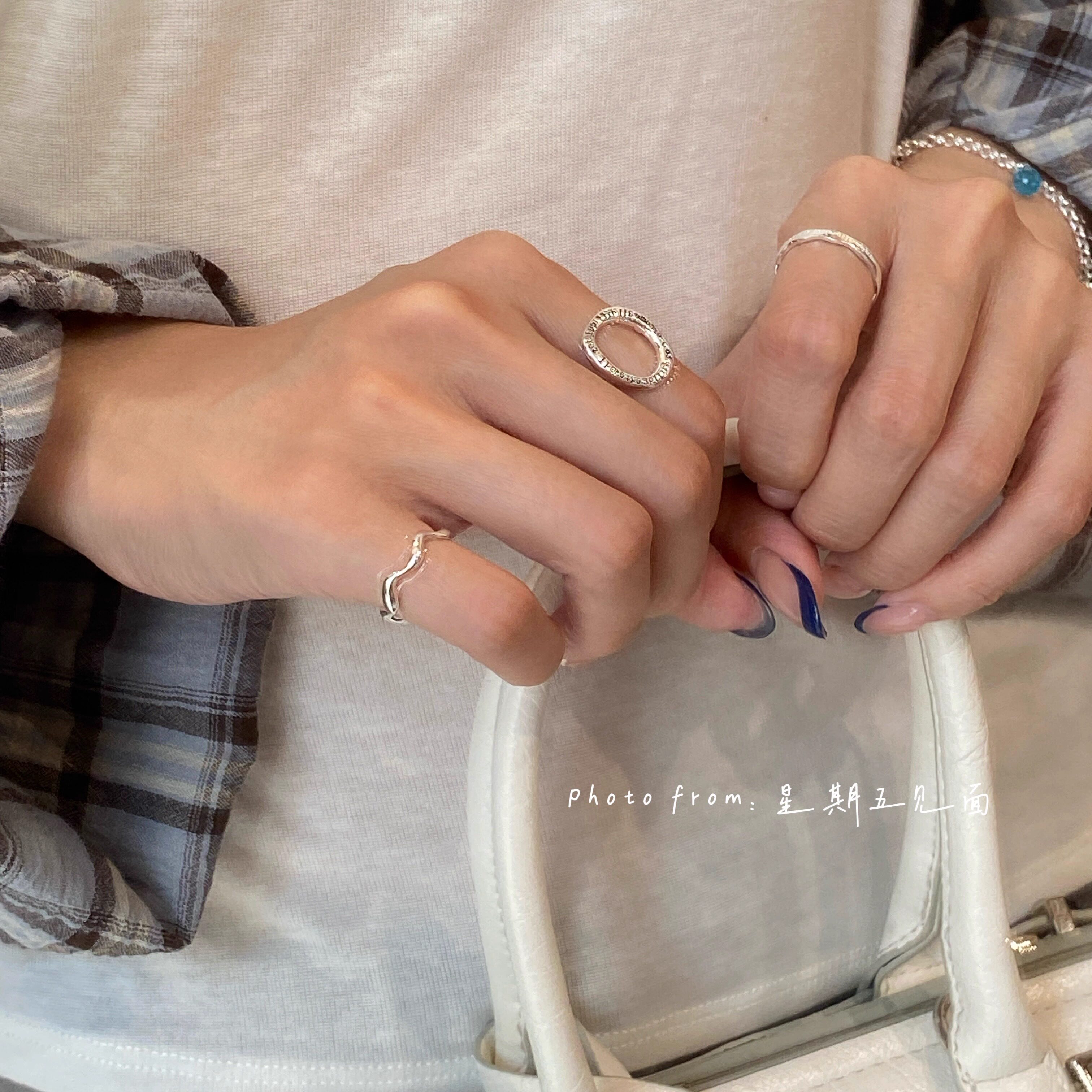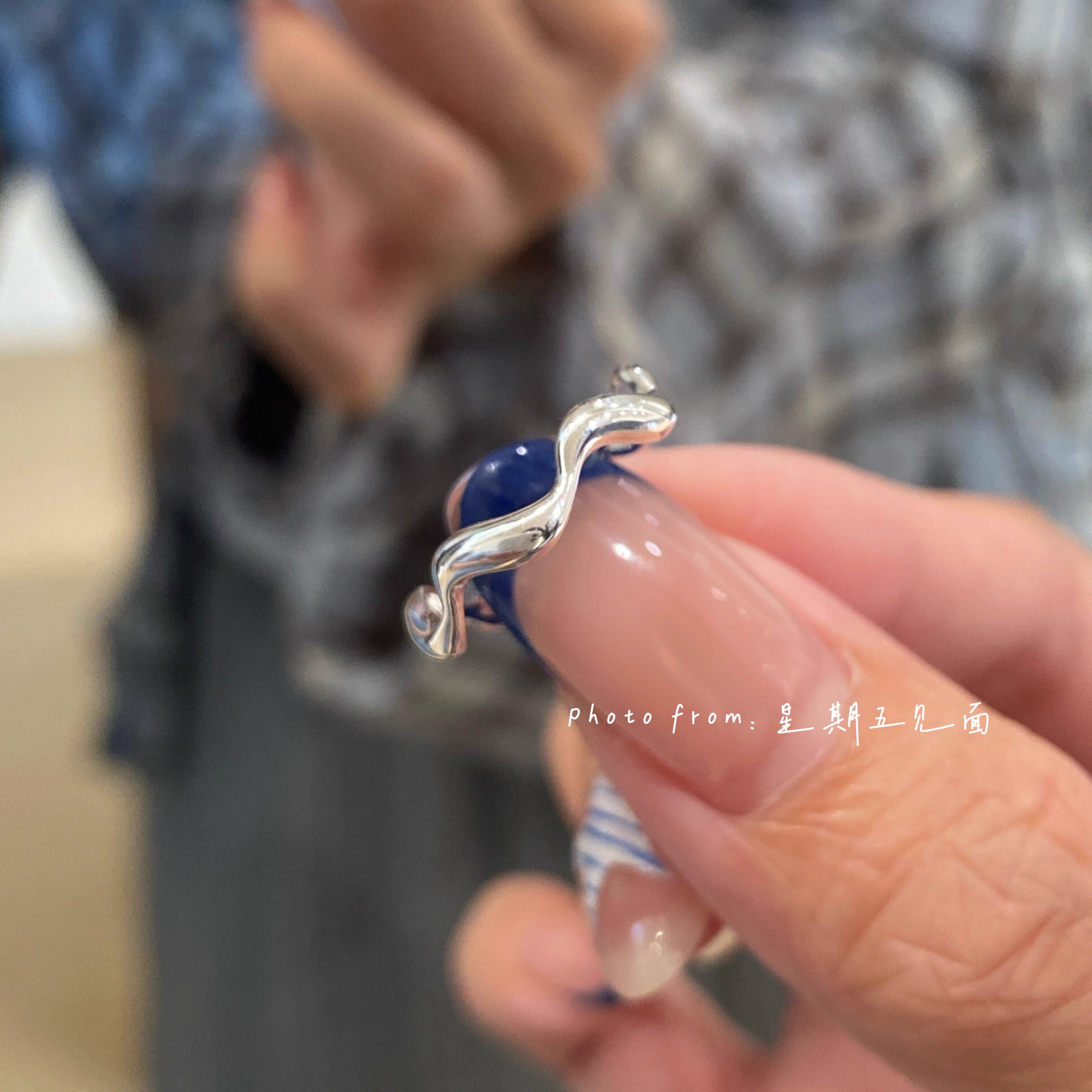 📚 星期五见面|原创设计 极简光面波浪纹尾戒 通勤百搭韩风 纯银戒指